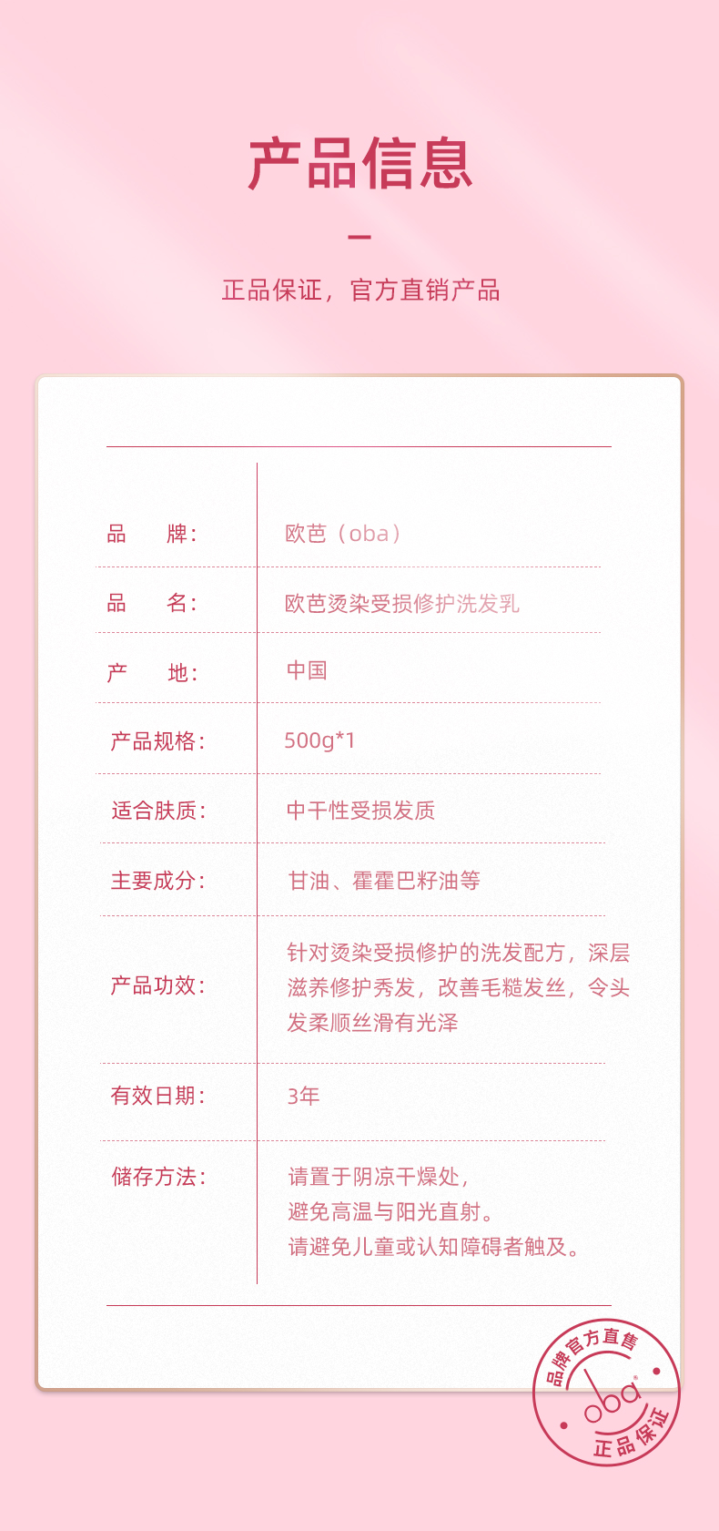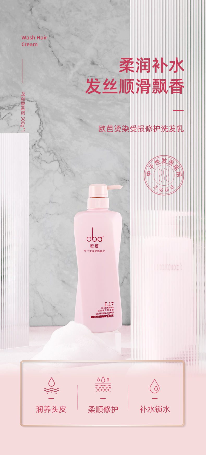 oba欧芭L17柔润补水发丝顺滑飘香烫染受损修护洗发乳霜-滋养欧巴正品