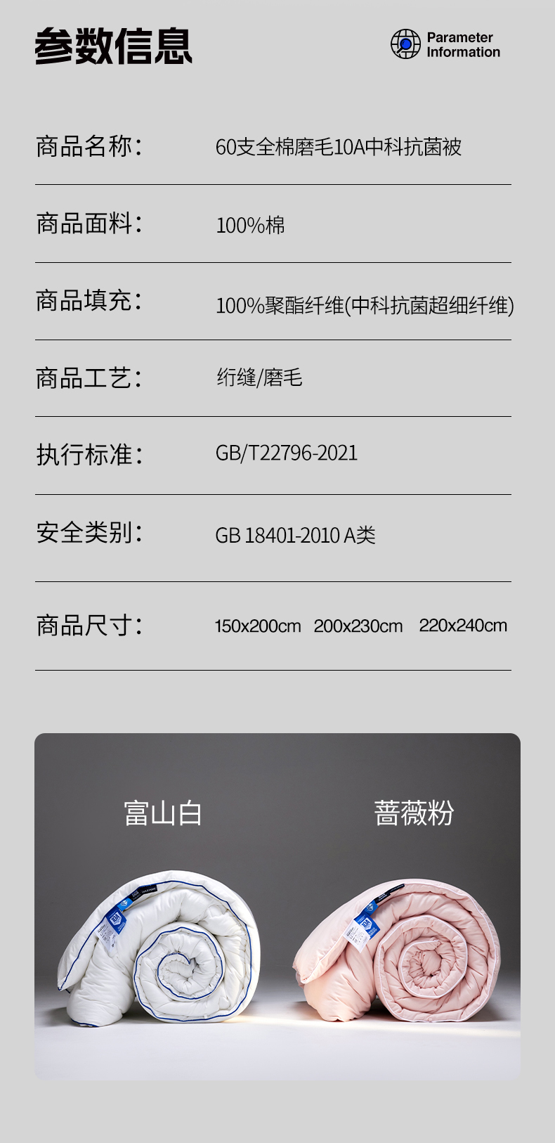 【热卖推荐】自然醒60支全棉磨毛10A中科抗菌被子被芯LFS