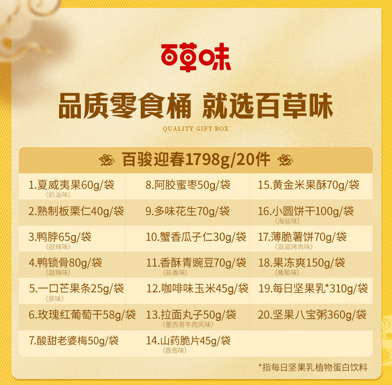 百草味坚果零食礼盒1798g(百骏迎春)【年货】XQS