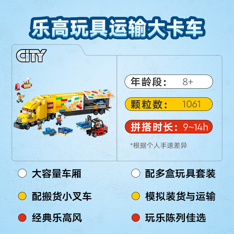 乐高积木 L60440 城市系列黄色运输车