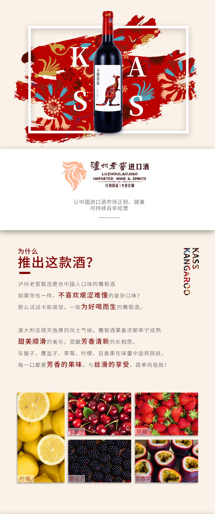 澳洲进口卡斯袋鼠红葡萄酒 半干红 750ml*6整箱【泸州老窖酒名堂】