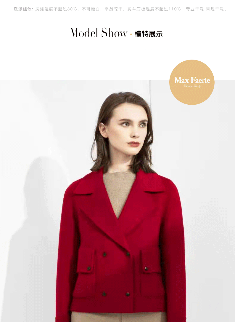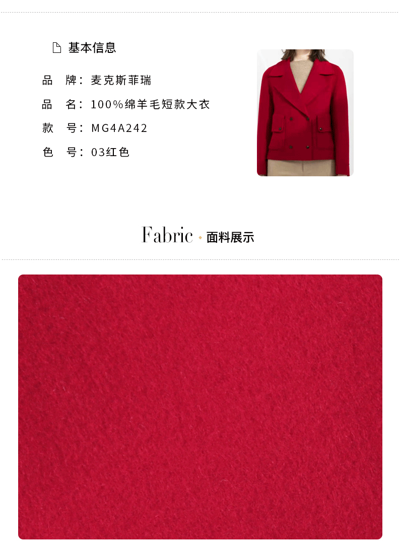 麦克斯菲瑞100%绵羊毛短款大衣mg4a242