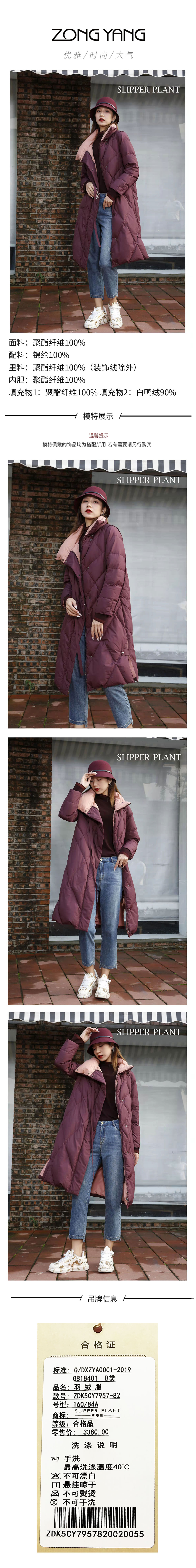 宗洋&卓蔻兰 女士中长款时尚百搭羽绒服ZDK5CY7957-82