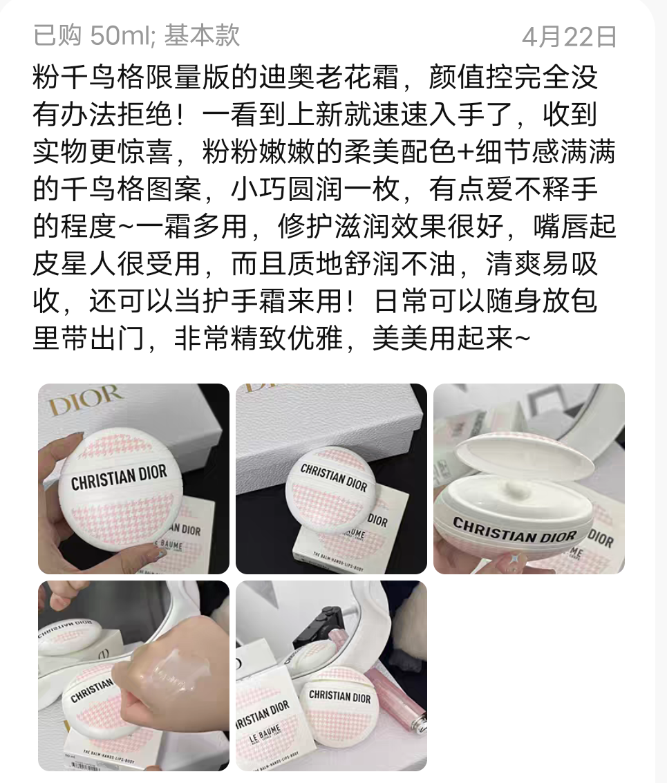 「DIOR粉色千鸟格限定老花霜50ml」