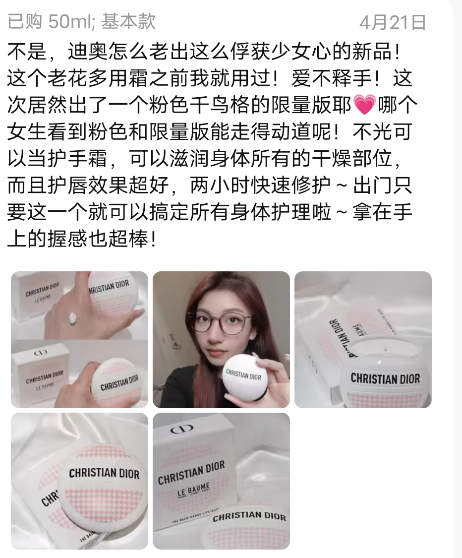 『Dior迪奥粉色千鸟格限定经典老花霜』