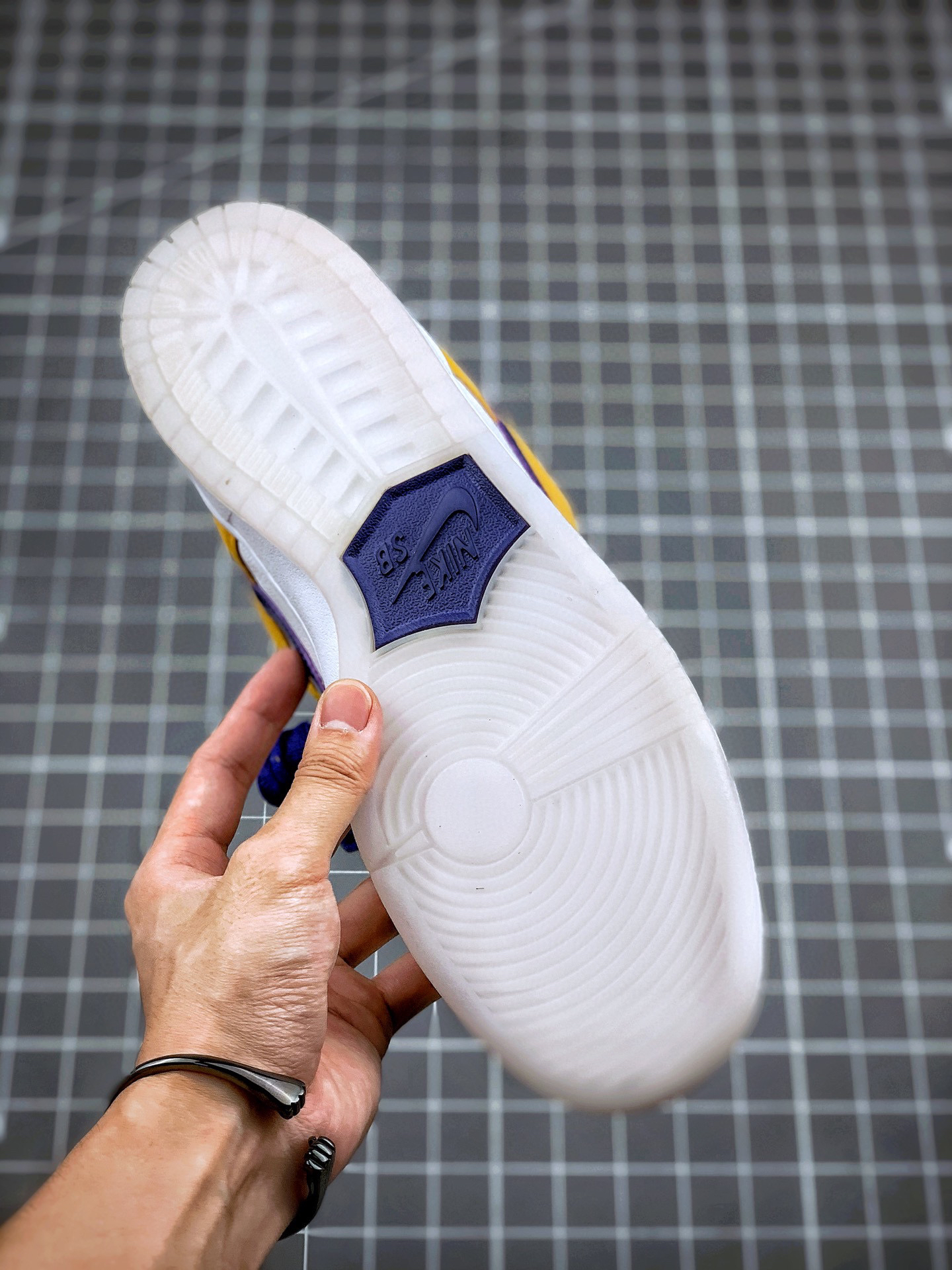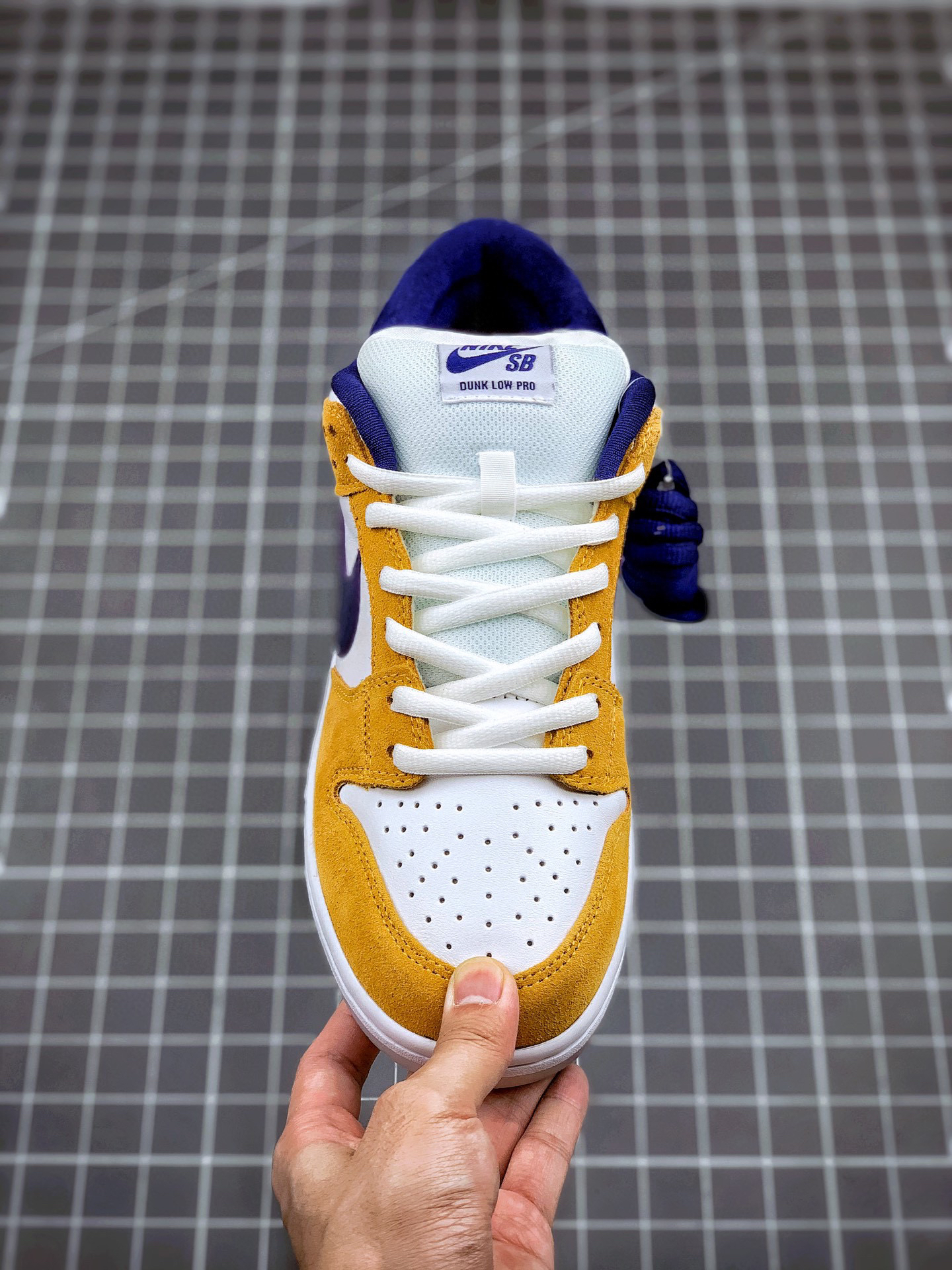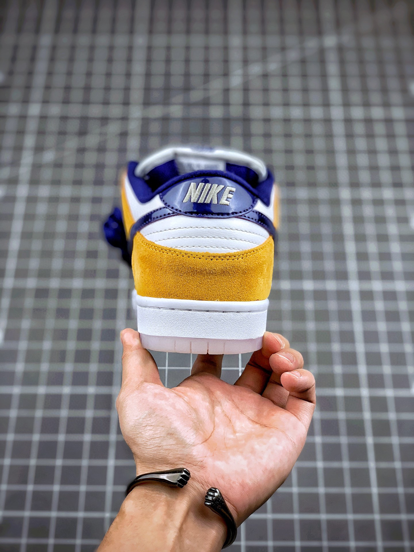 这款低帮配色上与湖人球队的配色十分相近。同时融入乳白色的配色也让鞋身整体更为柔和。 搭配的另外一副紫色鞋带,也令人更加期待上脚效果。水晶大底也让鞋身整体增添一份复古感觉。紫金配色作为湖人球队的专属配色,其鲜明的视觉效果为人熟知。