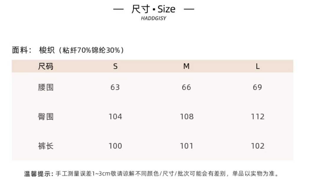 休闲裤尺码