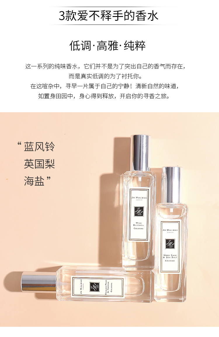 Jo Malone祖玛珑祖马龙香水小苍兰鼠尾草海盐英国梨蓝风铃忍冬与印蒿橙花英国橡树与榛子30ml