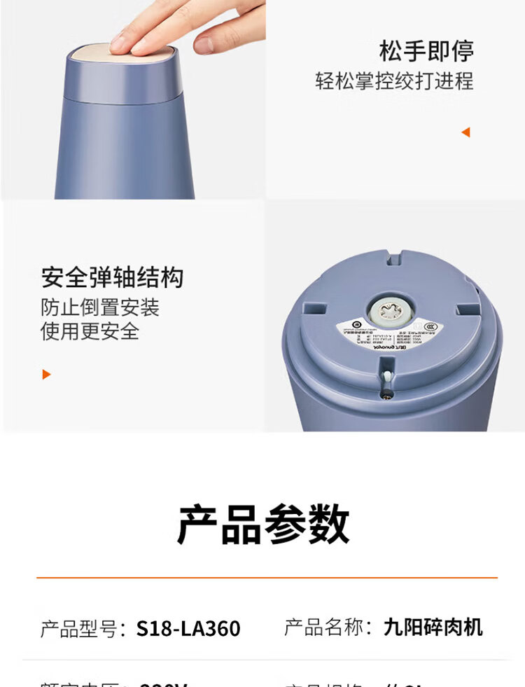 九阳(Joyoung)九阳绞肉机家用多功能搅拌辅食切菜电动绞肉馅S18-LA360