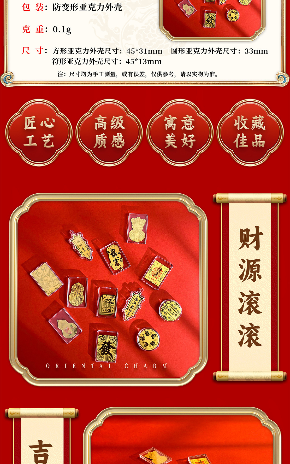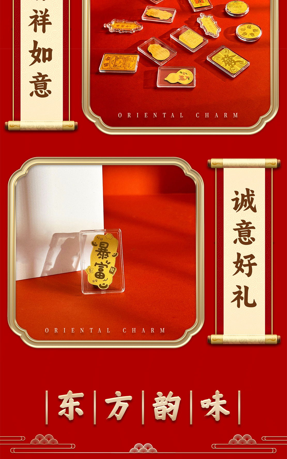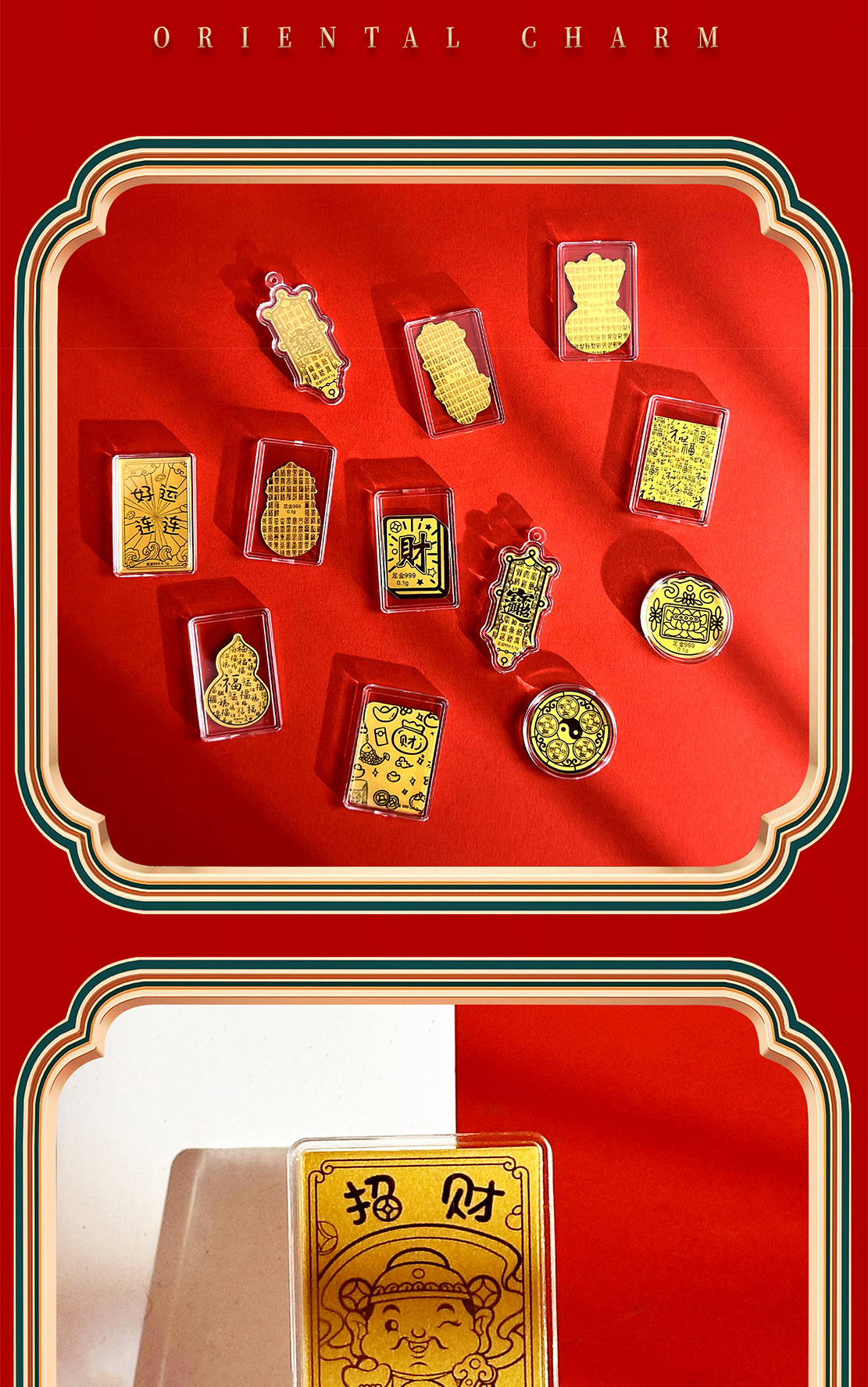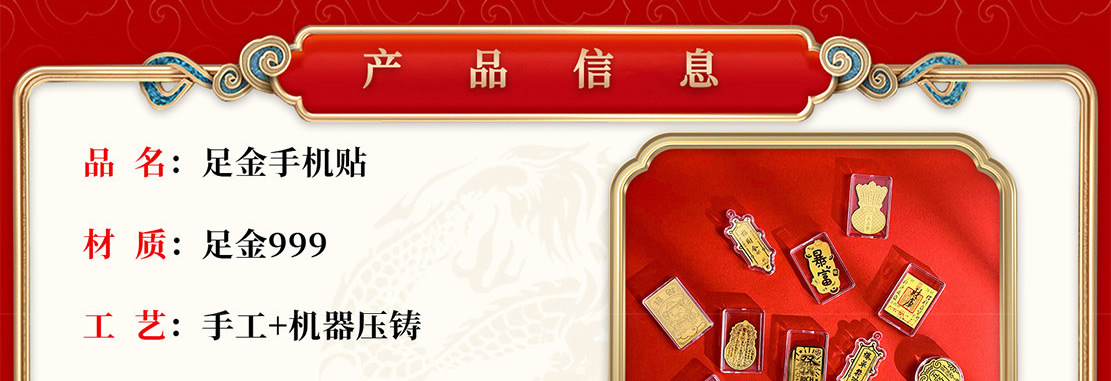 六鑫珠宝 足金999公主请发财财神黄金手机贴