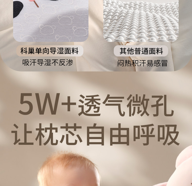科巢婴儿枕头宝宝硅胶定型枕头0到6个月透气纠正头型防偏头护脊