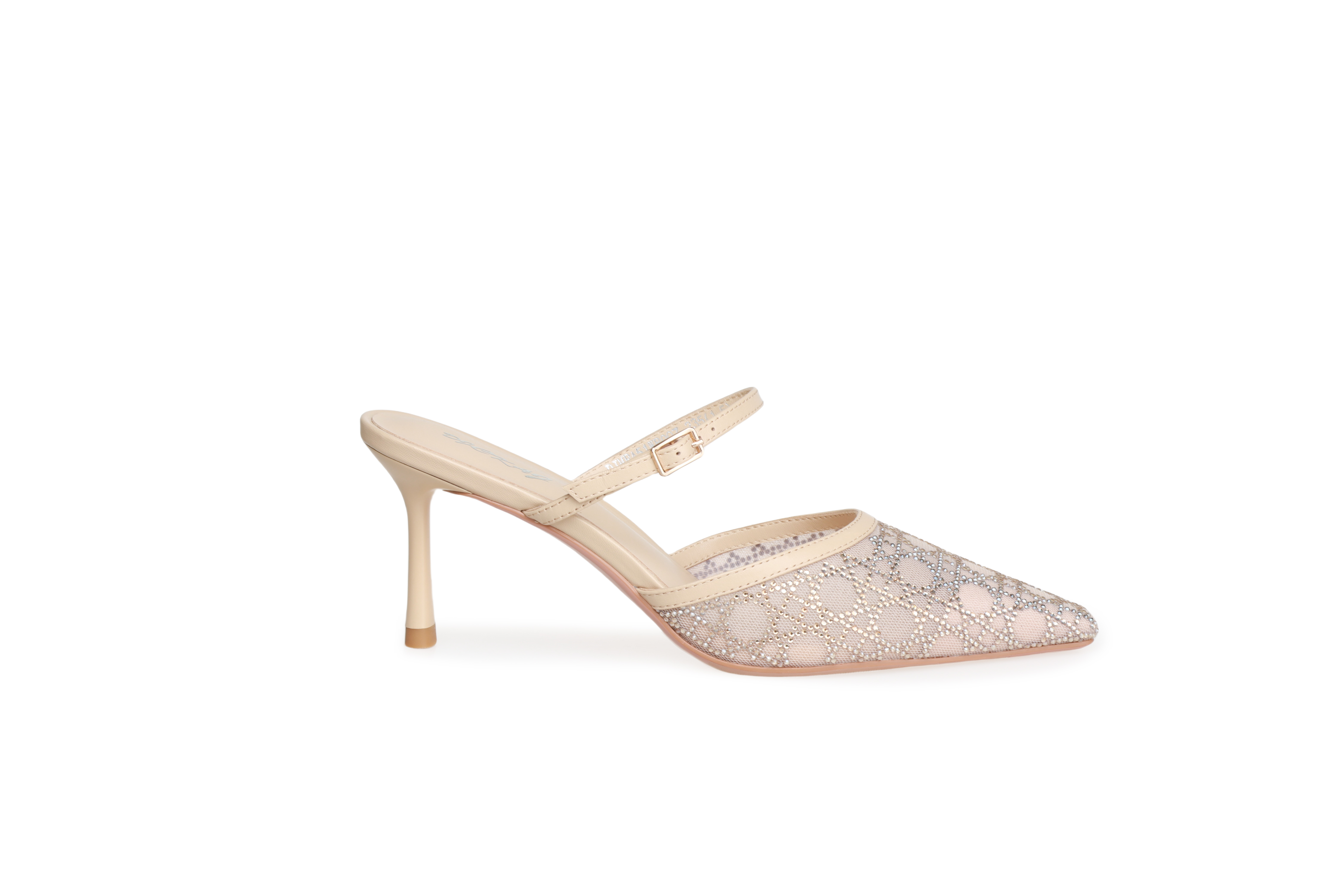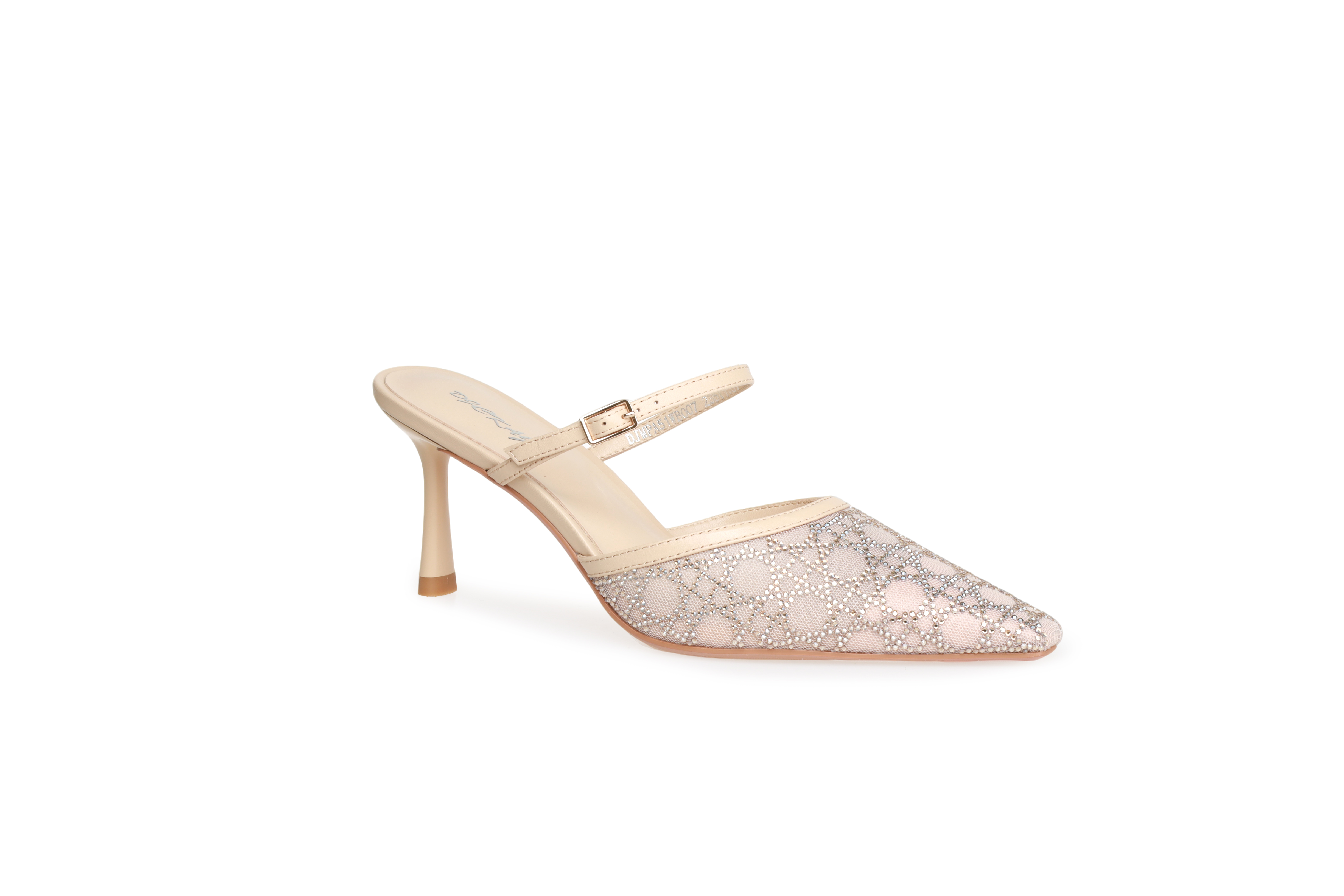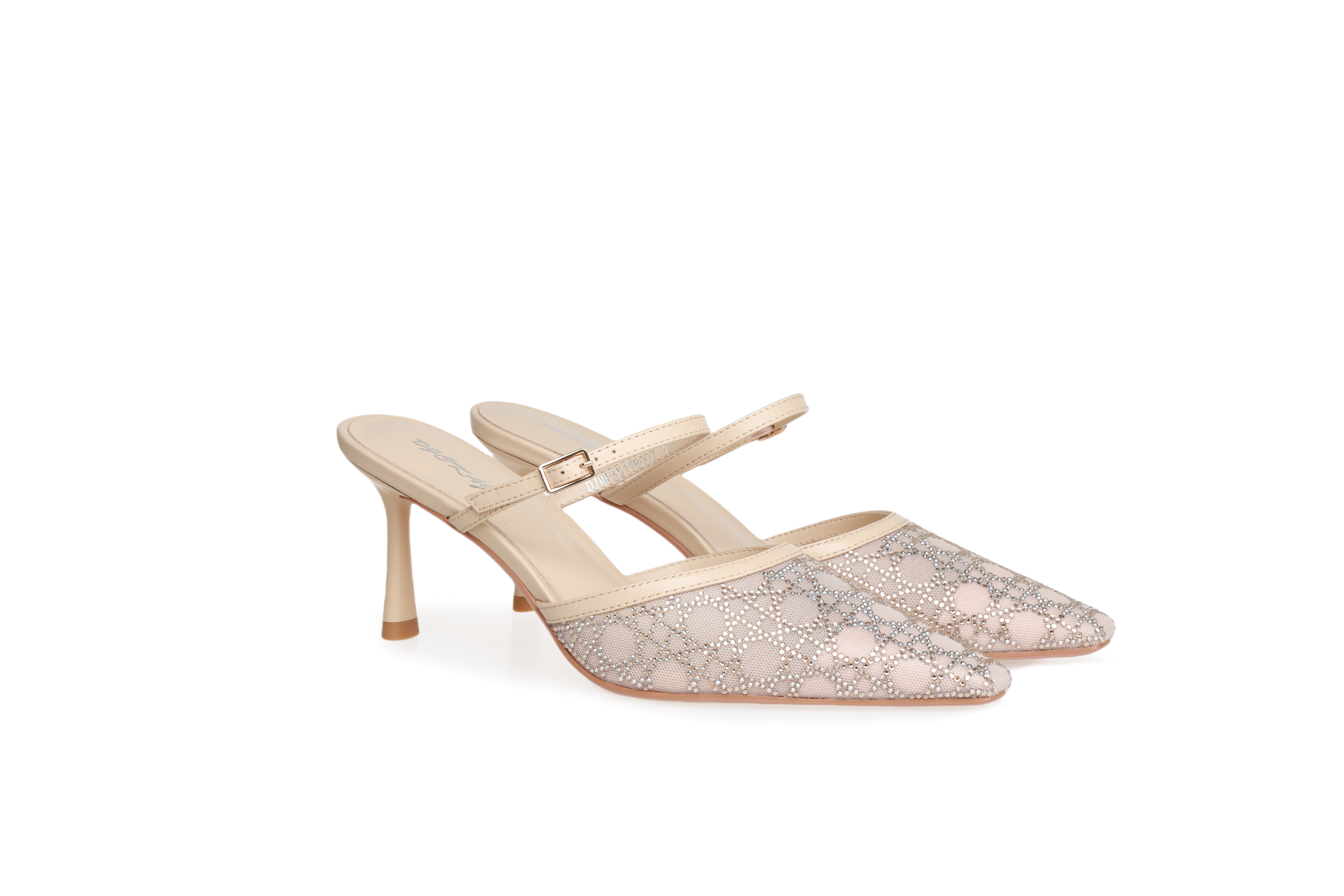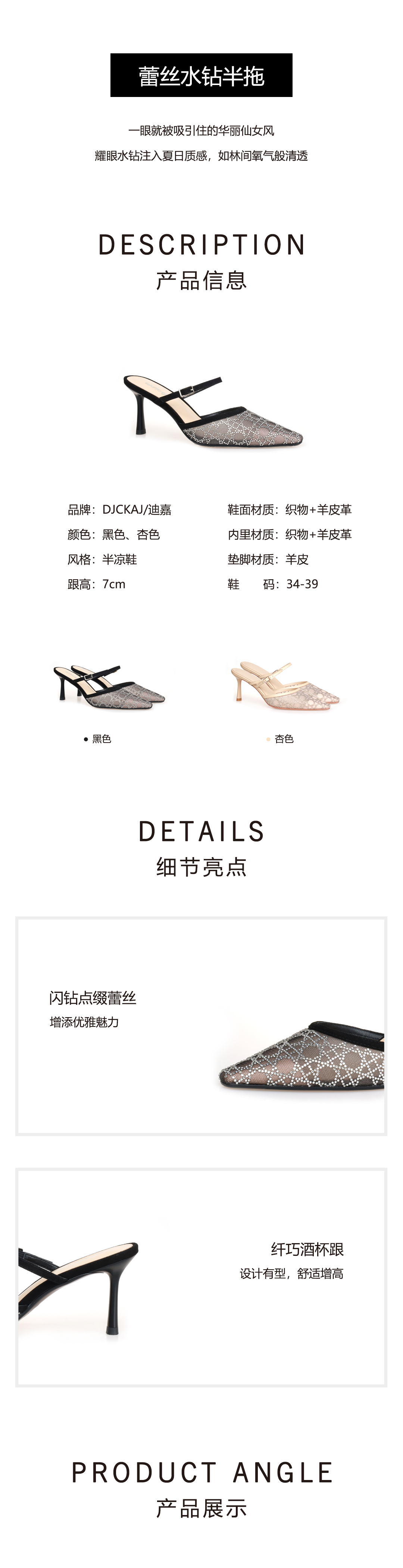 豪麟名鞋奥莱迪嘉女鞋半凉鞋织物+羊皮革DJMPA51WB007杏色 原价2660元
