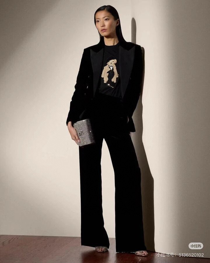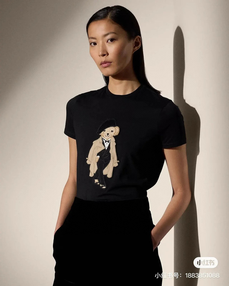 💰108元包邮 【刘诗诗同款】RL拉夫小熊刺绣黑色短袖T恤