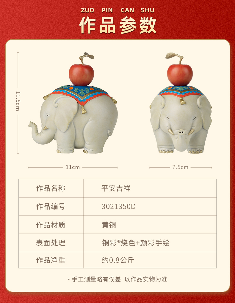 铜师傅 铜摆件《平安吉祥》大象桌面客厅办公桌家居装饰礼品摆件