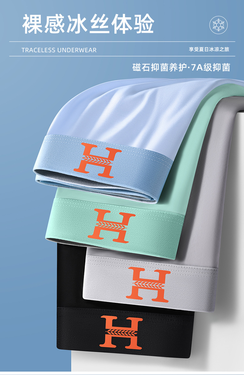 4条装爆款男士内裤磁石温感透气裆冰丝平角裤四角薄款男生短裤