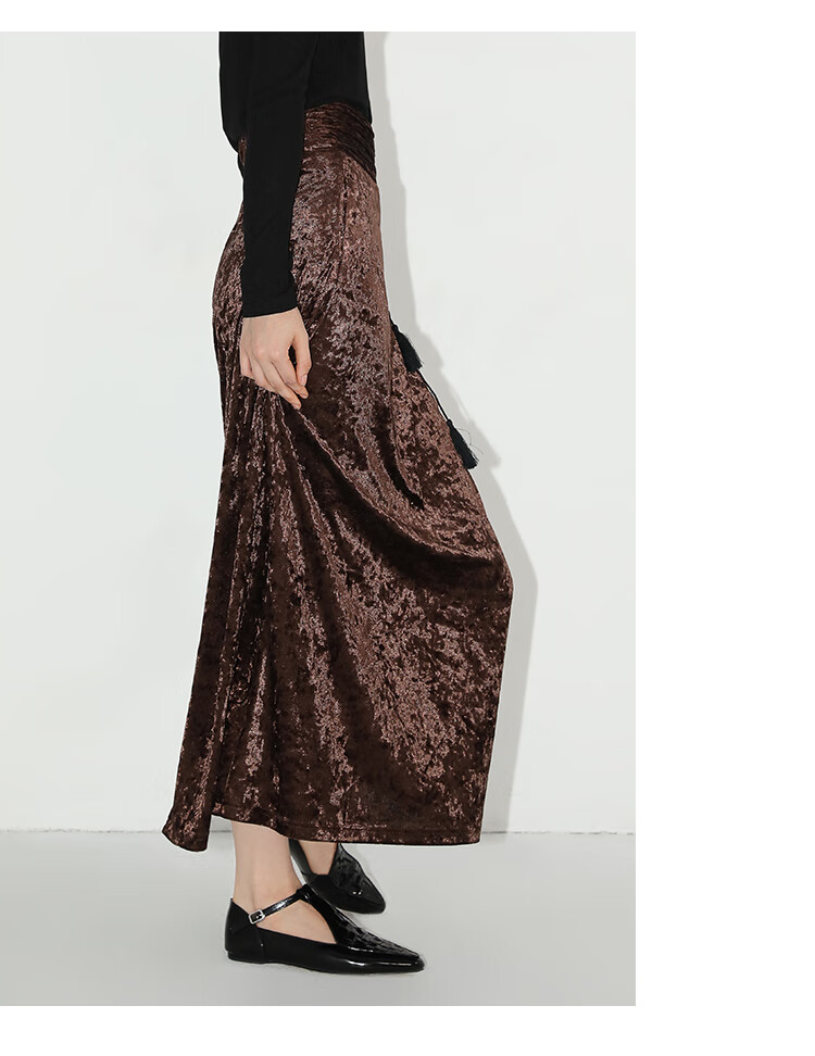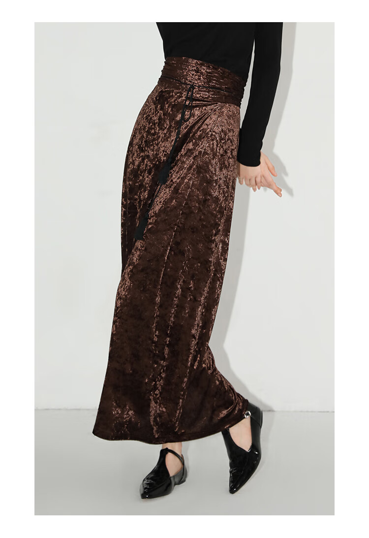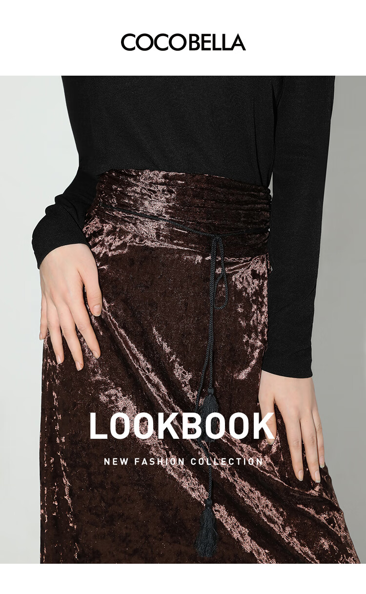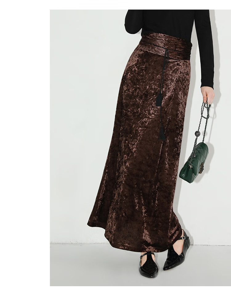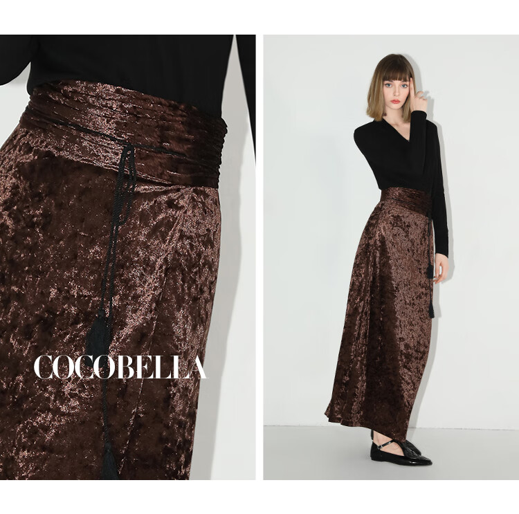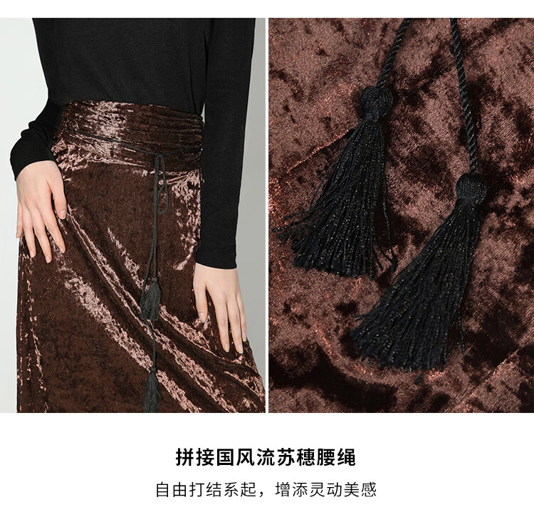 【限时秒杀】COCOBELLA光感冰花丝绒半身裙国风高腰封流苏裹身长裙HS0005