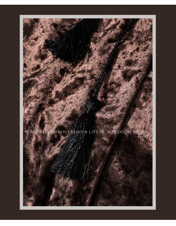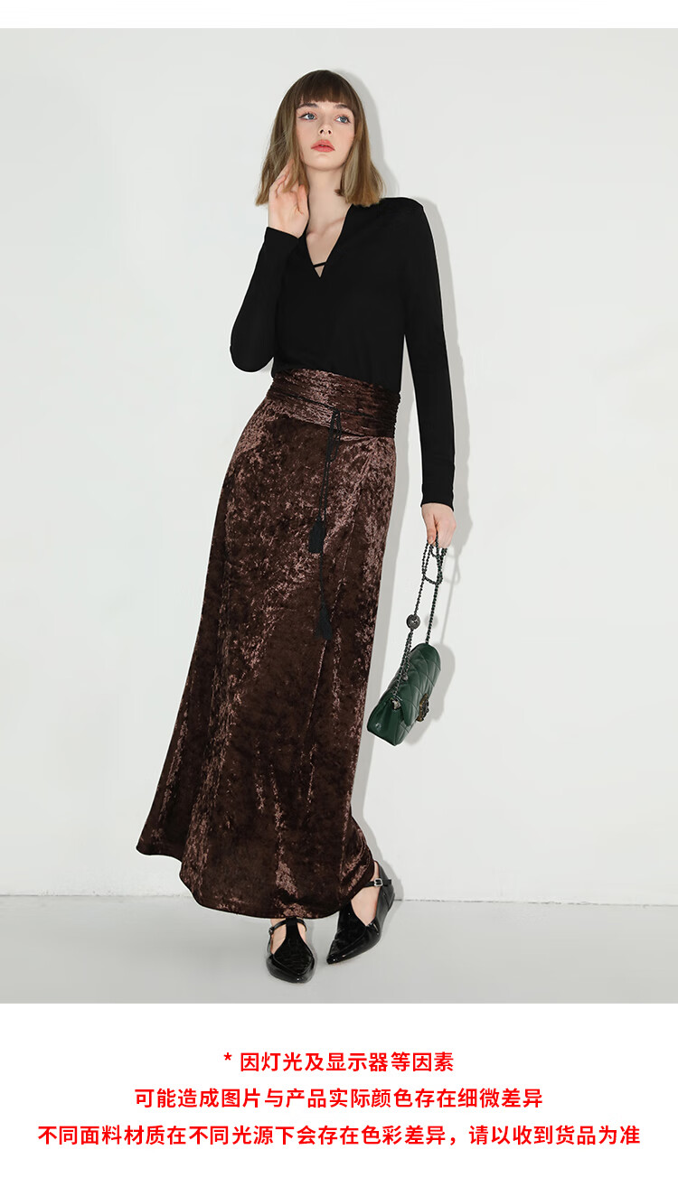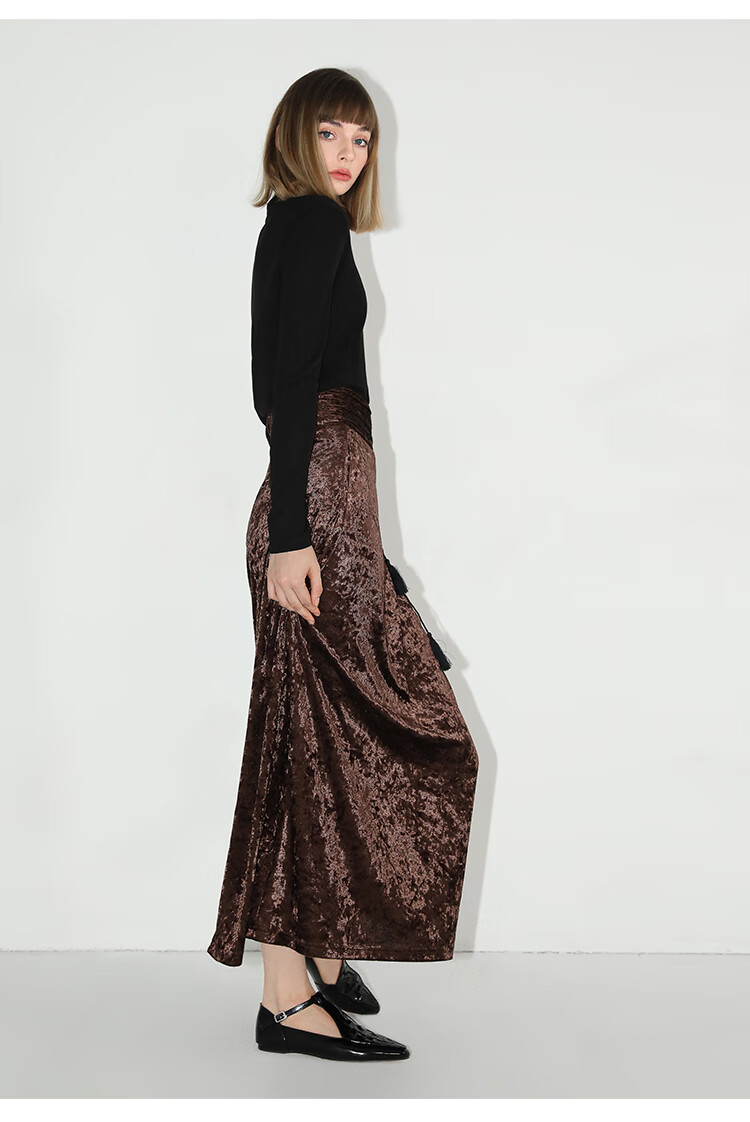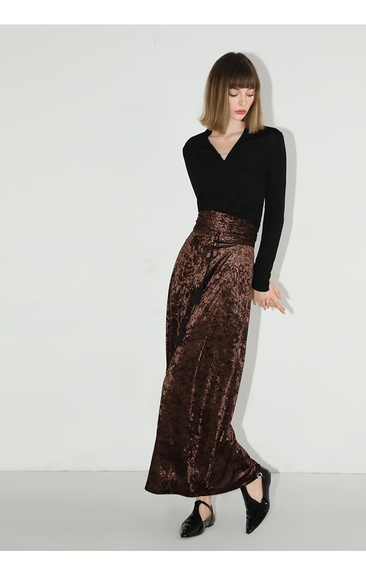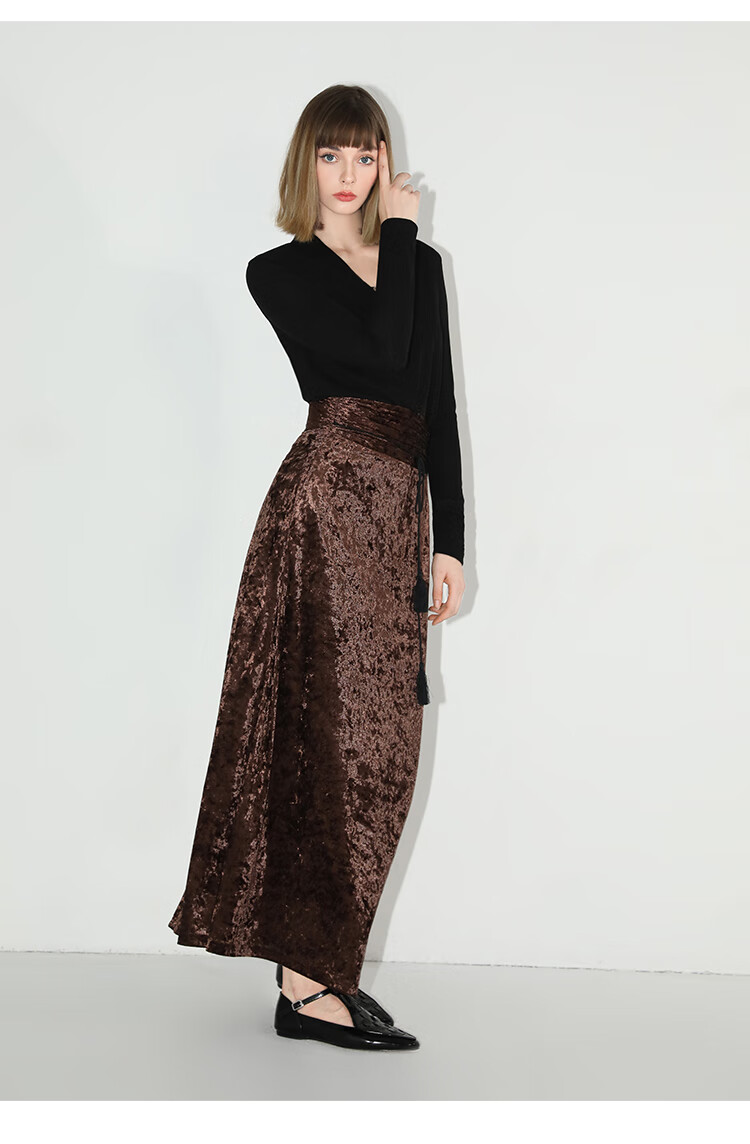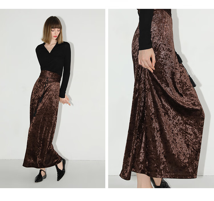 【限时秒杀】COCOBELLA光感冰花丝绒半身裙国风高腰封流苏裹身长裙HS0005