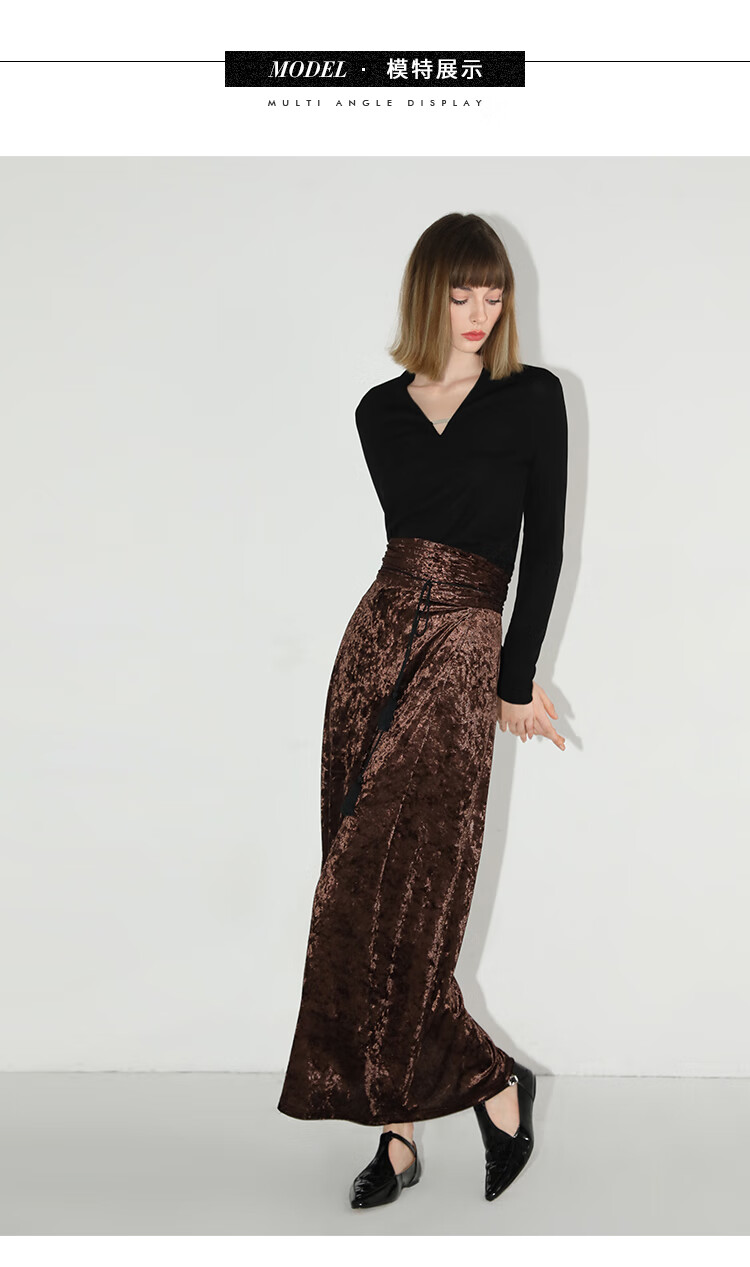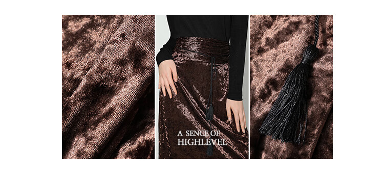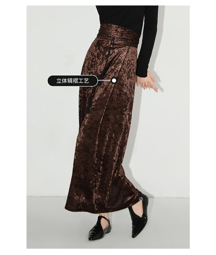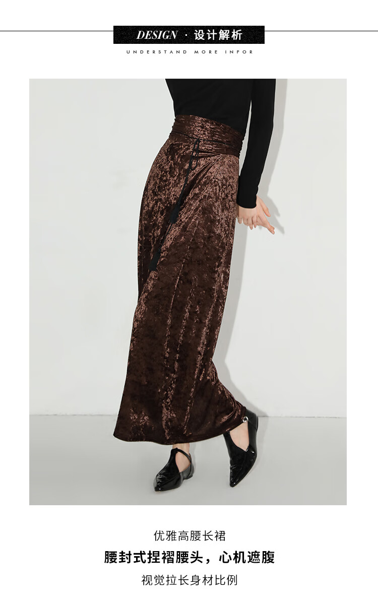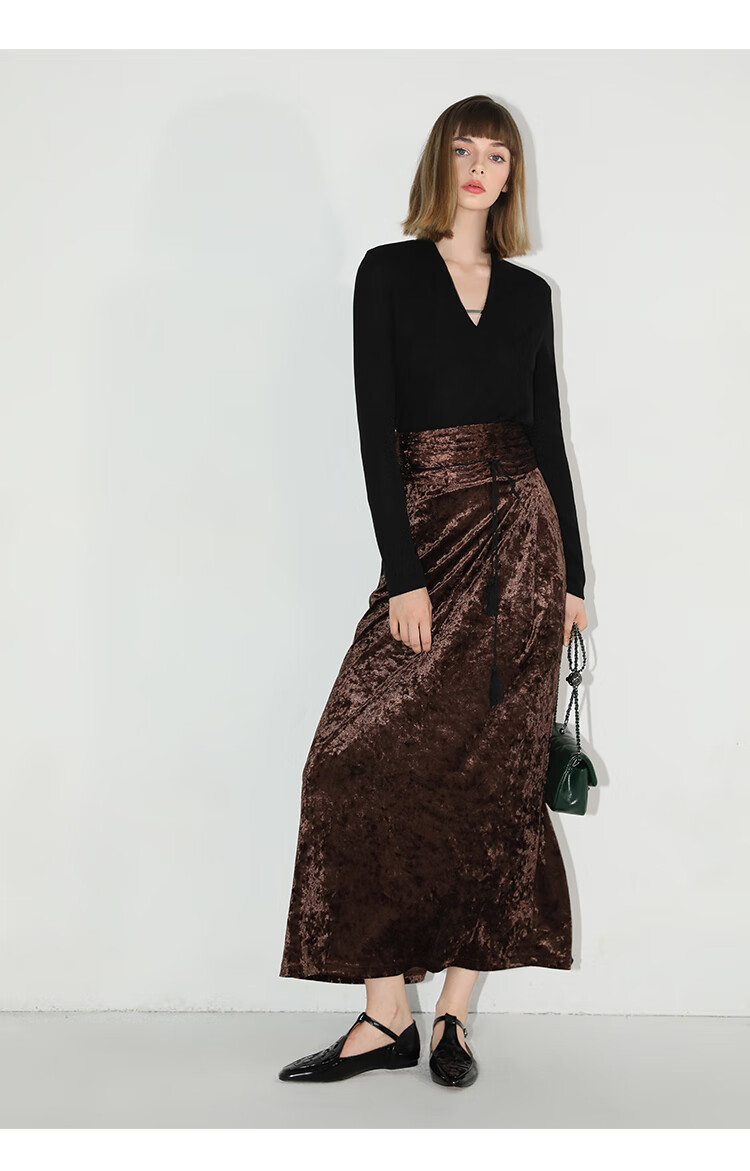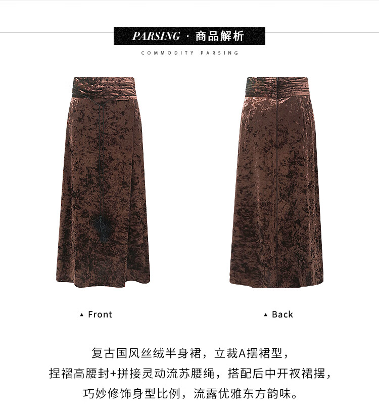 【限时秒杀】COCOBELLA光感冰花丝绒半身裙国风高腰封流苏裹身长裙HS0005