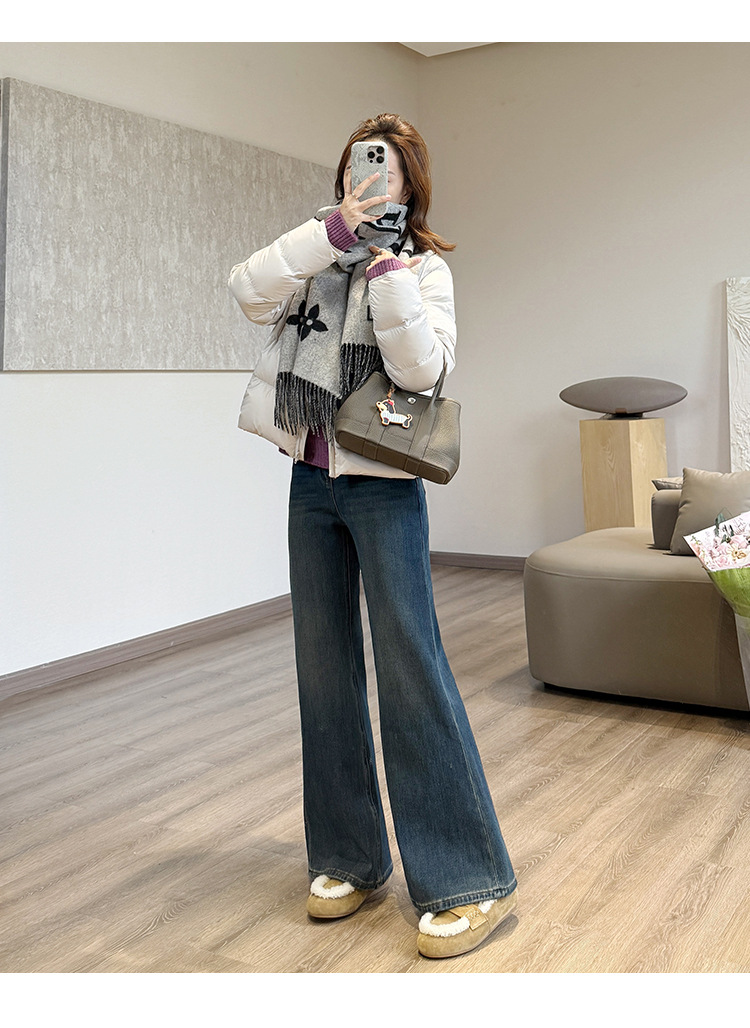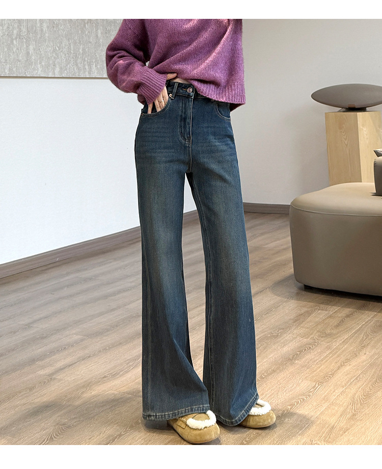 【不挑身高 显瘦显腿直神裤 两件减20】超模植绒微喇裤【有2种裤长噢】四面弹加绒牛仔裤复古蓝冬季加绒长裤