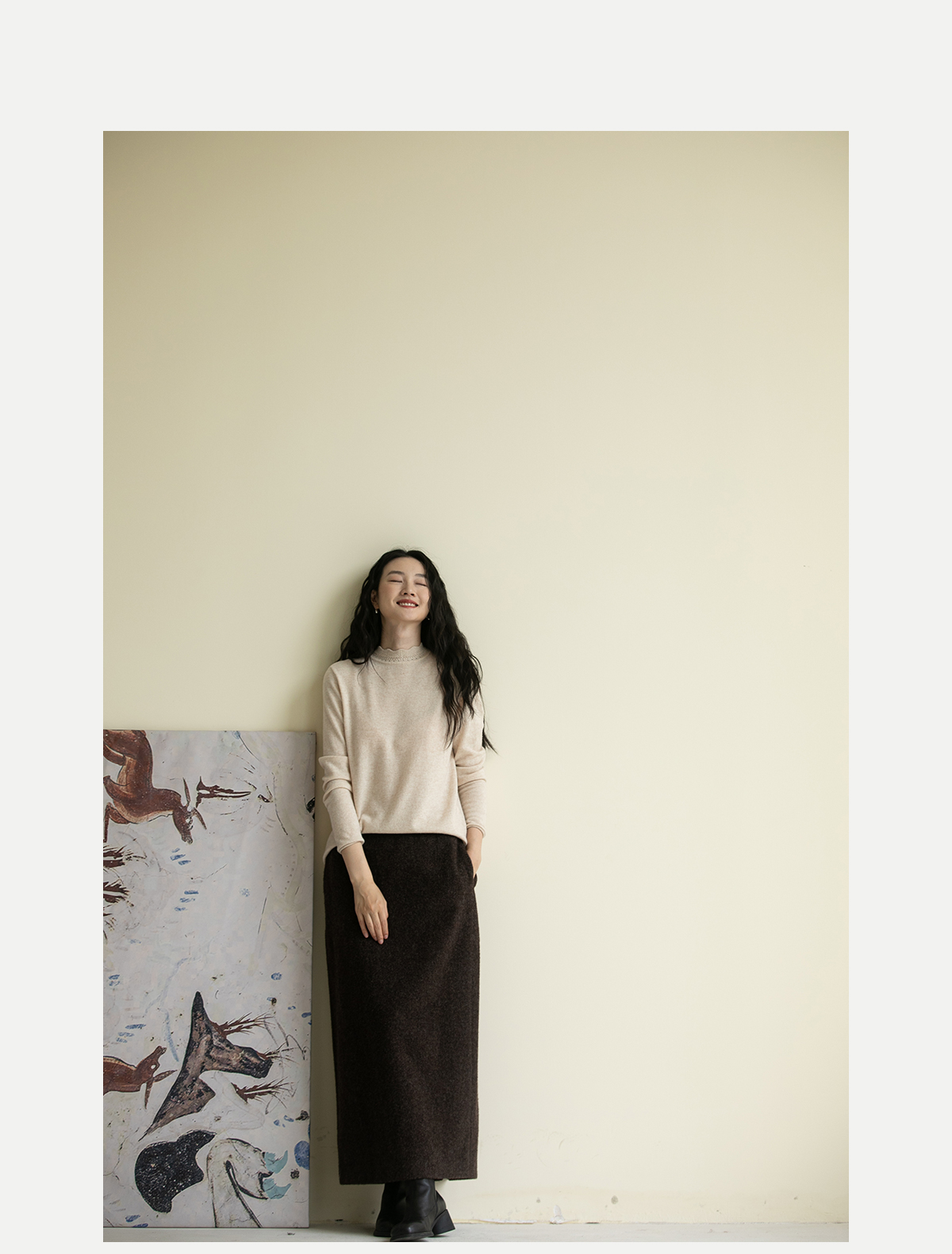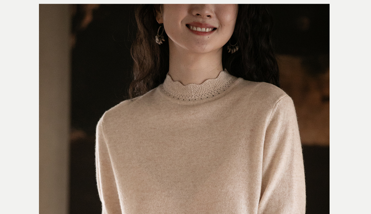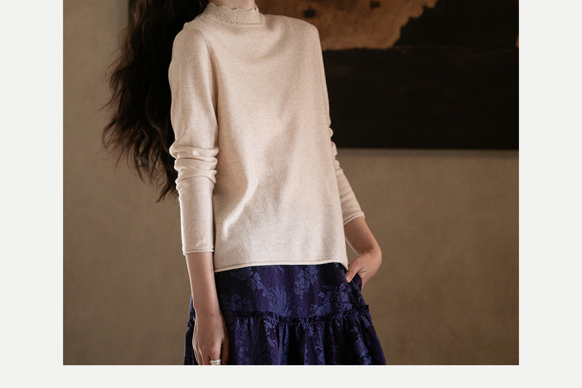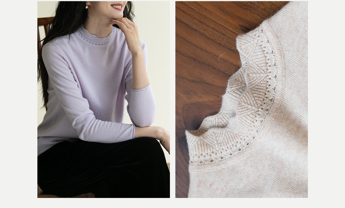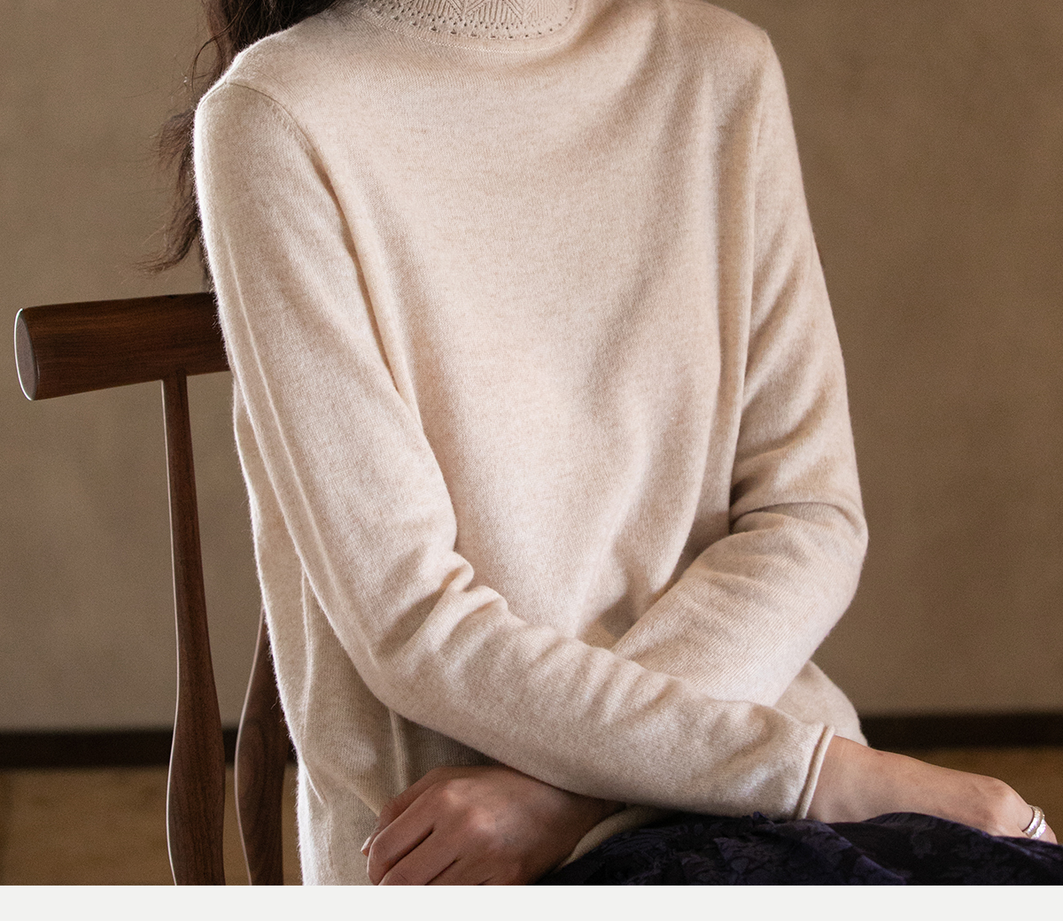 牧衣游原创 羊绒羊毛混织打底毛衣女保暖舒适可外穿百搭上衣 霁白