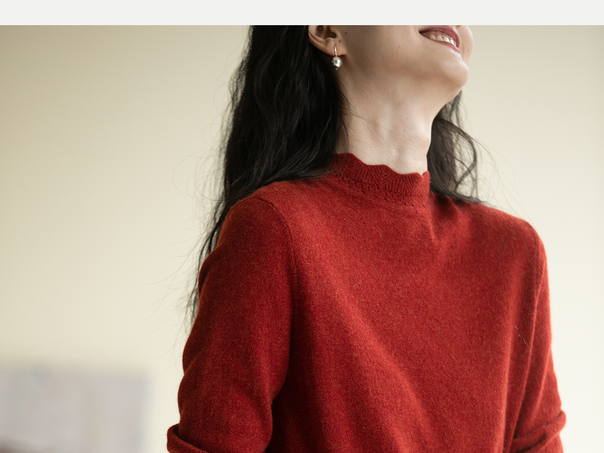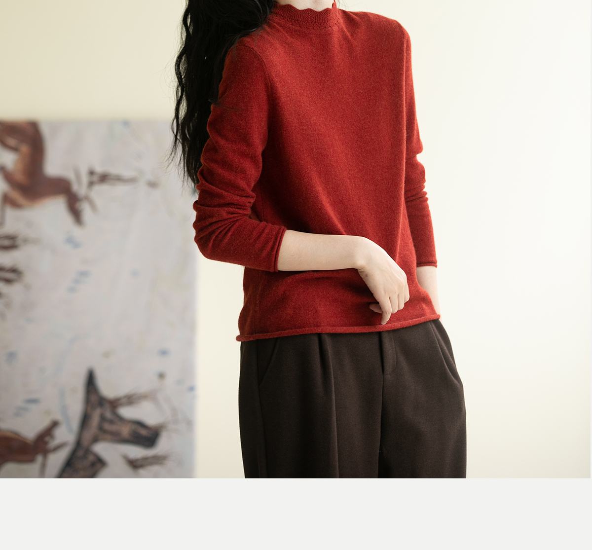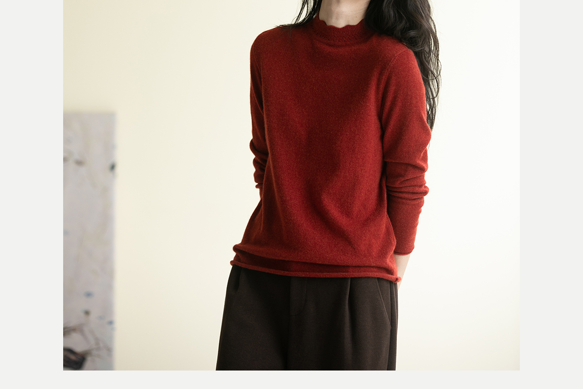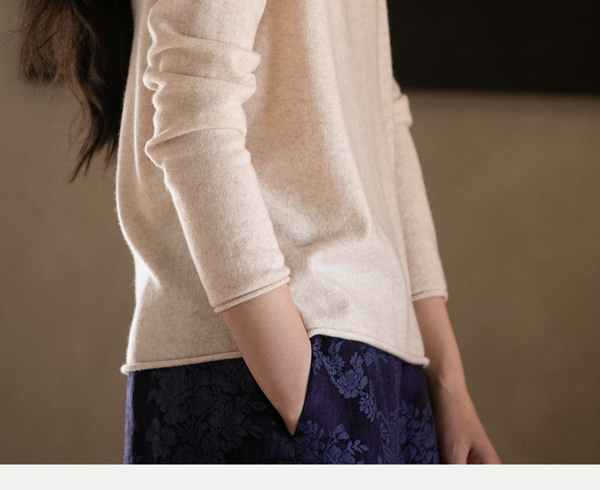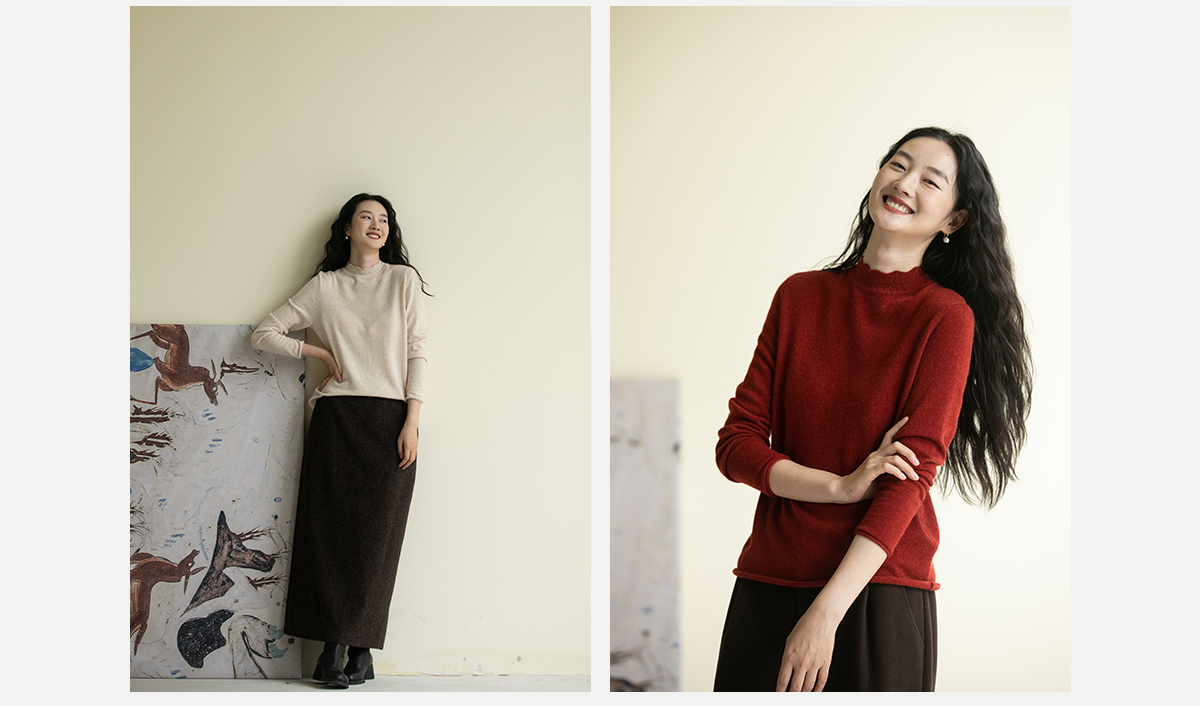 牧衣游原创 羊绒羊毛混织打底毛衣女保暖舒适可外穿百搭上衣 霁白