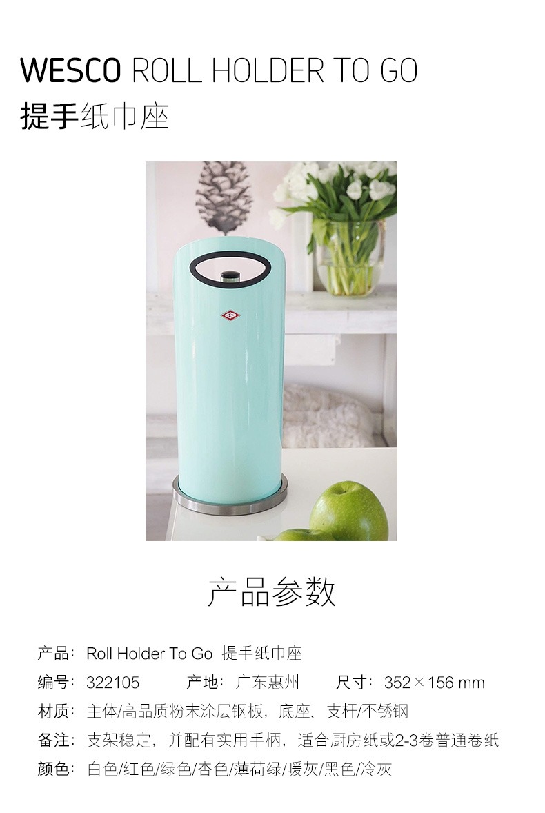 德国威士克欧式厨房不锈钢纸巾座纸巾架 薄荷绿【不支持补差,非质量问题不退不换】S