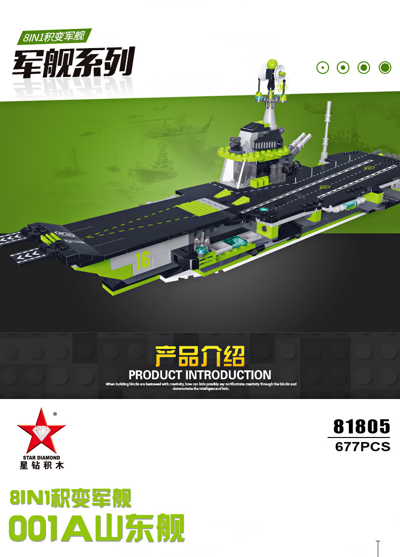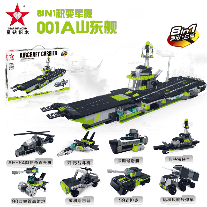 9月兑换星钻军事航空母舰9种形态小颗粒男孩益智拼装积木玩具模型81805
