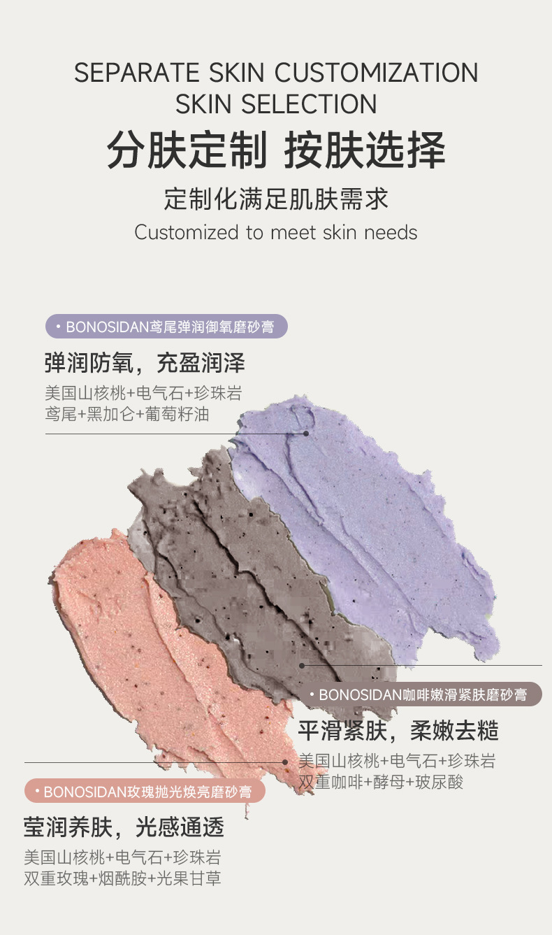 【高定香氛护理 开启肌肤嫩 滑 亮】宝罗丝丹BONOSIDAN咖啡嫩滑玫瑰抛光鸢尾弹润磨砂膏去角质磨鸡皮