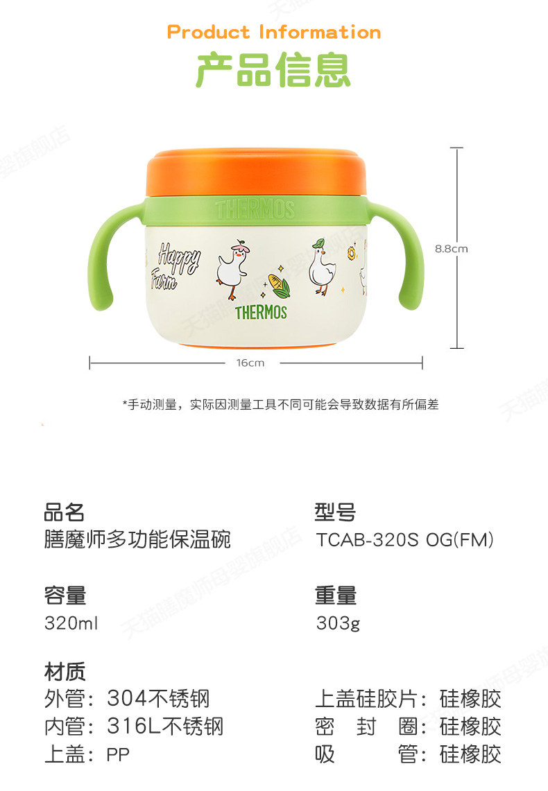 膳魔师多功能防烫儿童保温碗宝宝饭碗316L