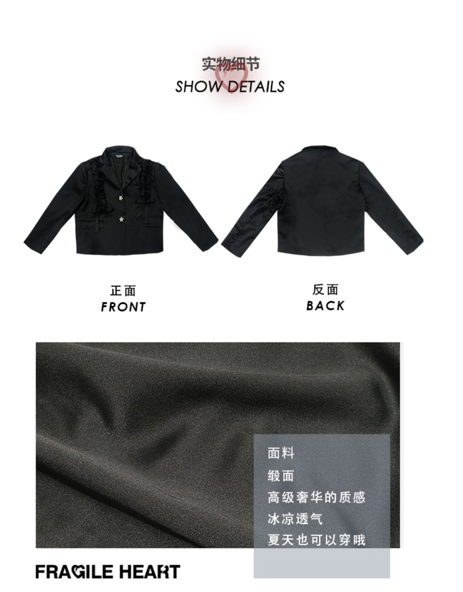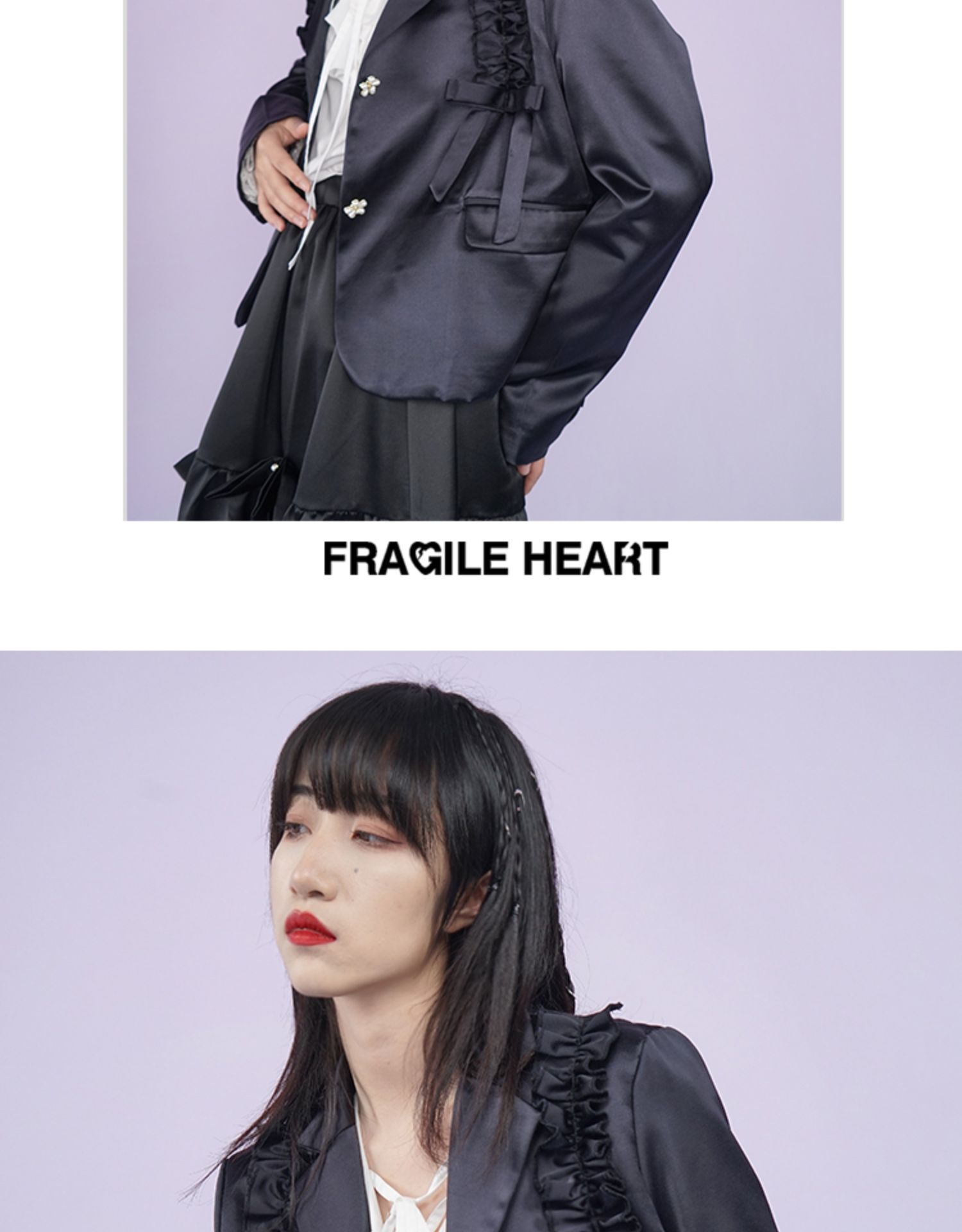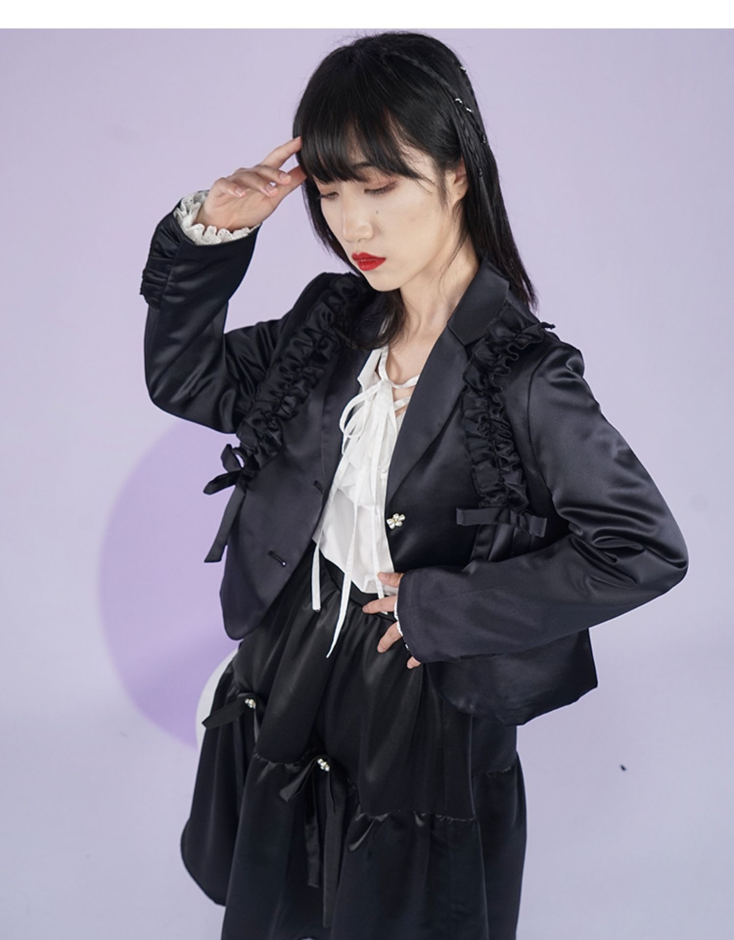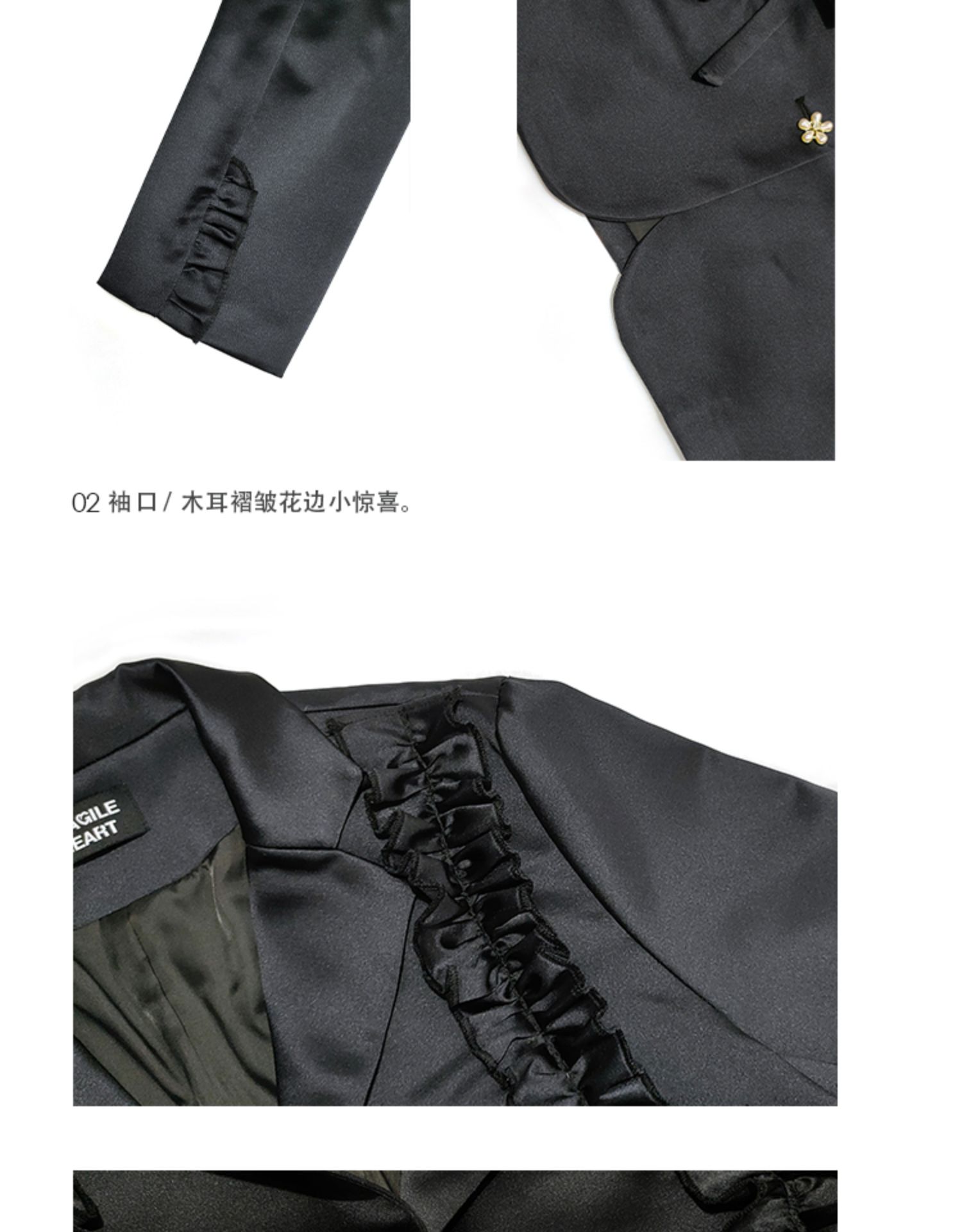 fragileheart易碎商店缎面蝴蝶结黑色立体感小众西装春款短外套女