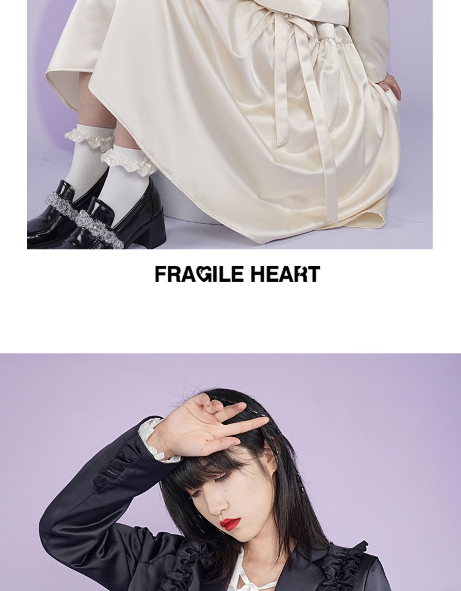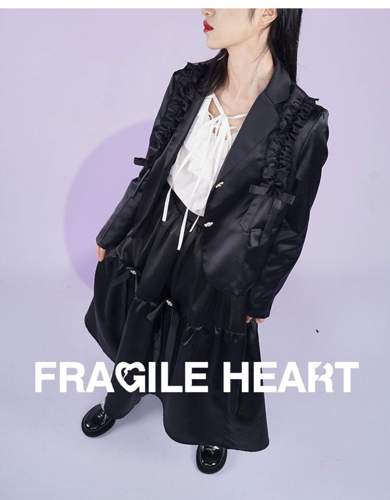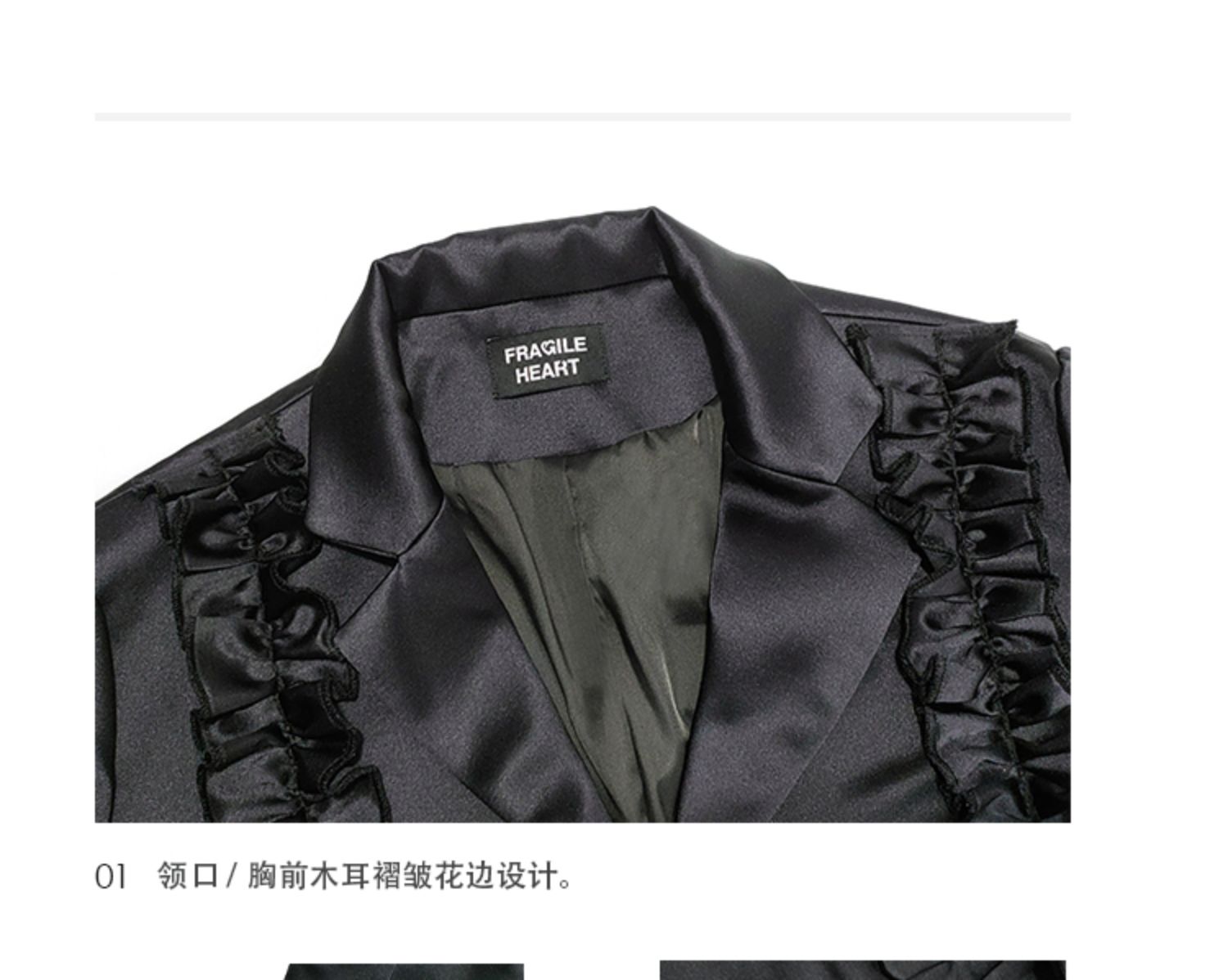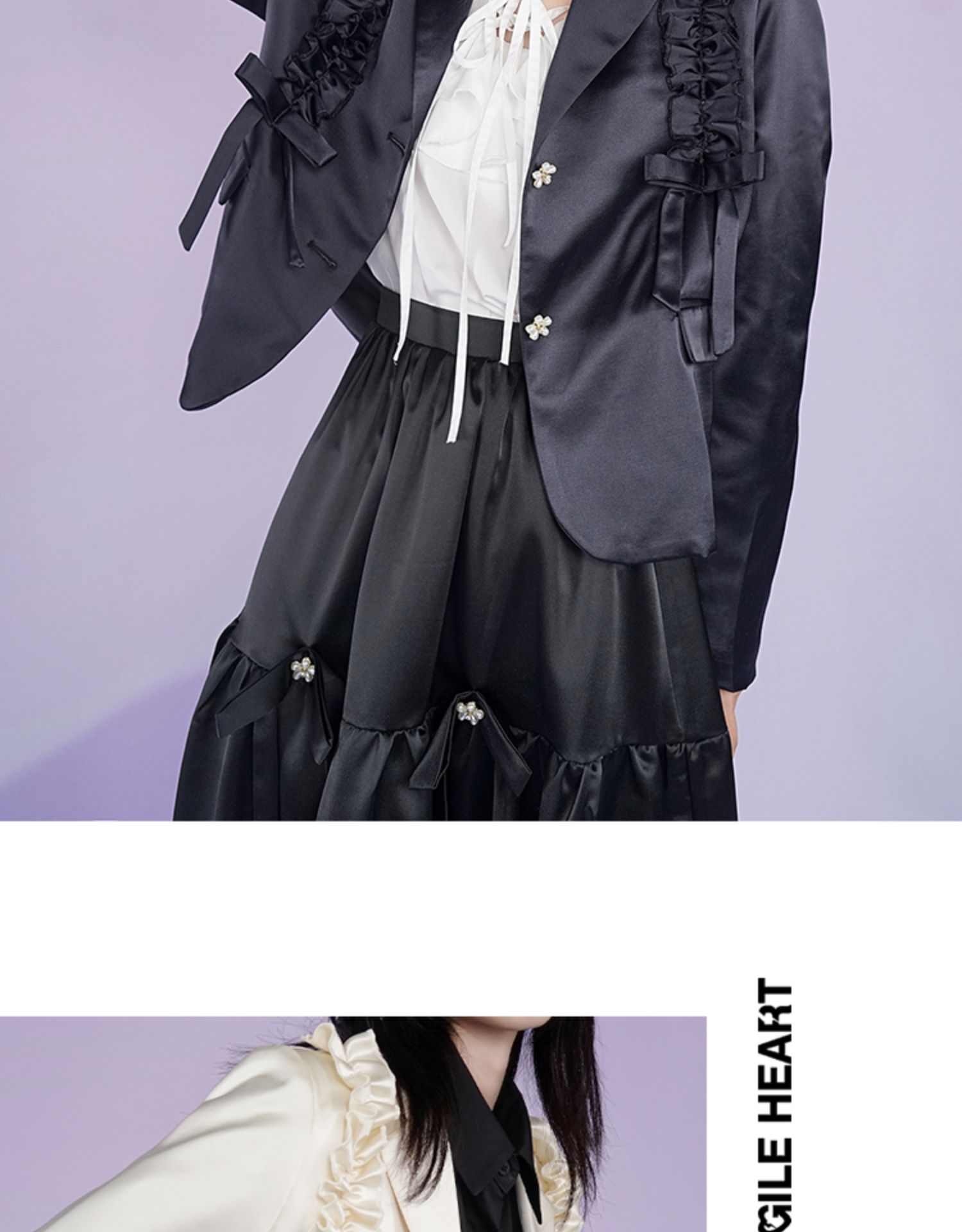 fragileheart易碎商店缎面蝴蝶结黑色立体感小众西装春款短外套女