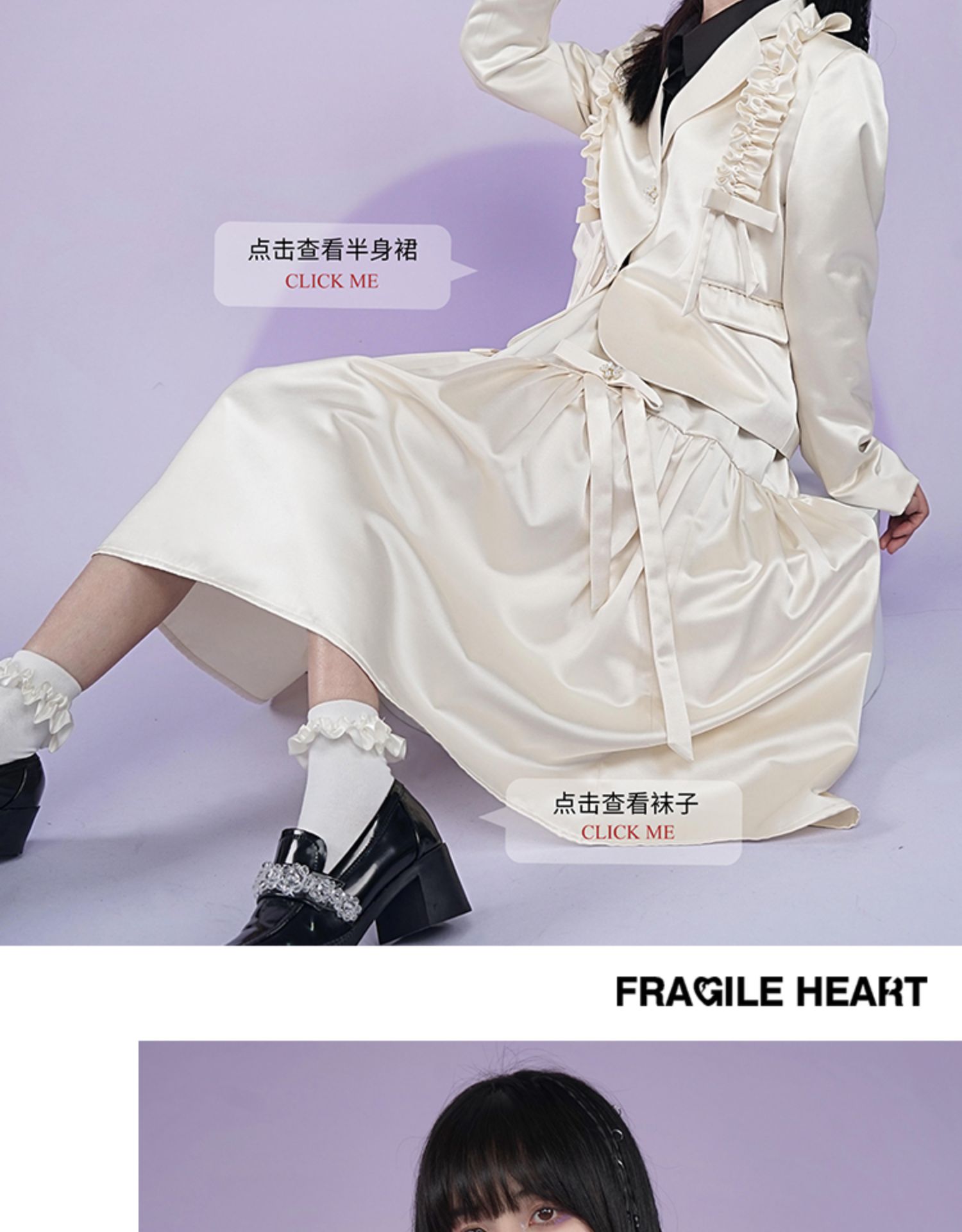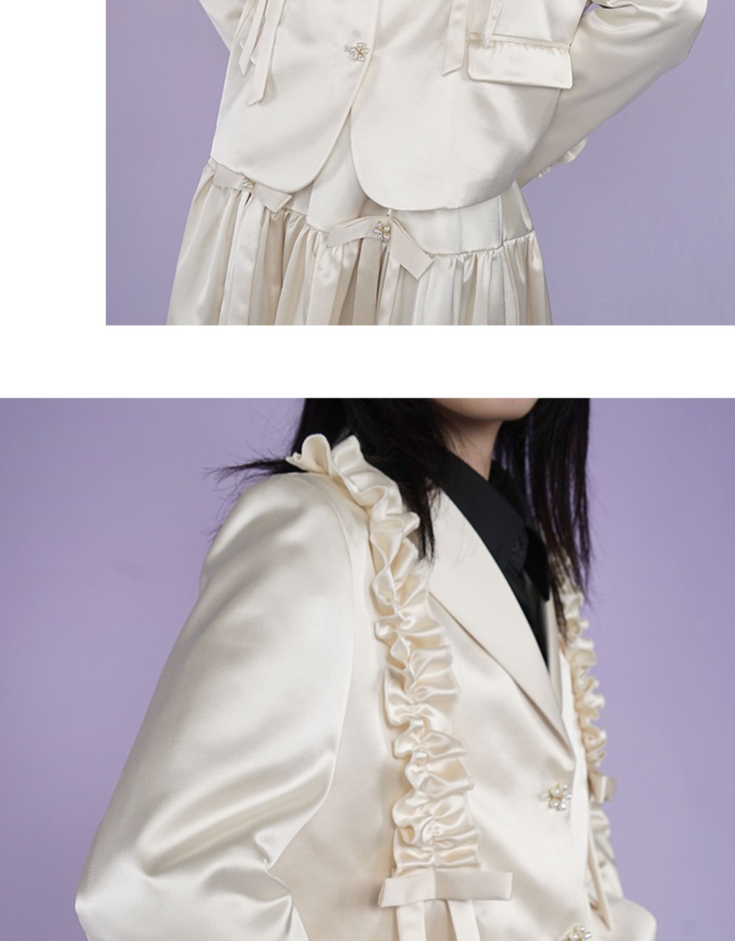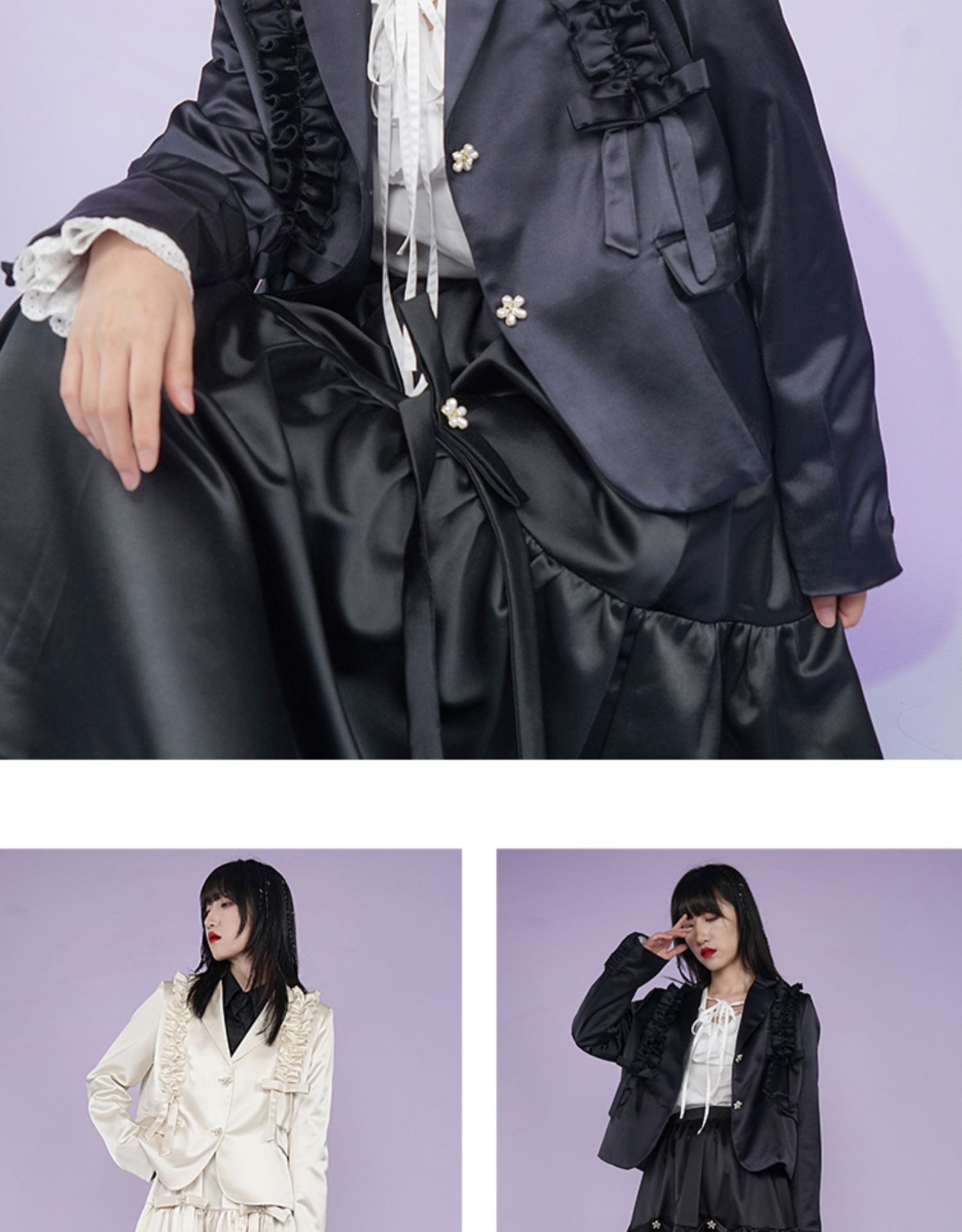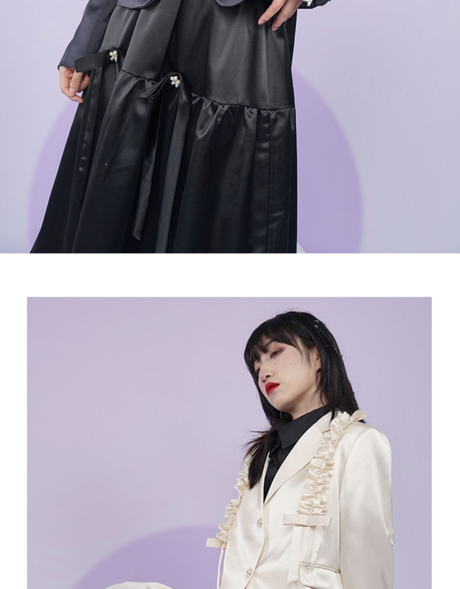 fragileheart易碎商店缎面蝴蝶结黑色立体感小众西装春款短外套女