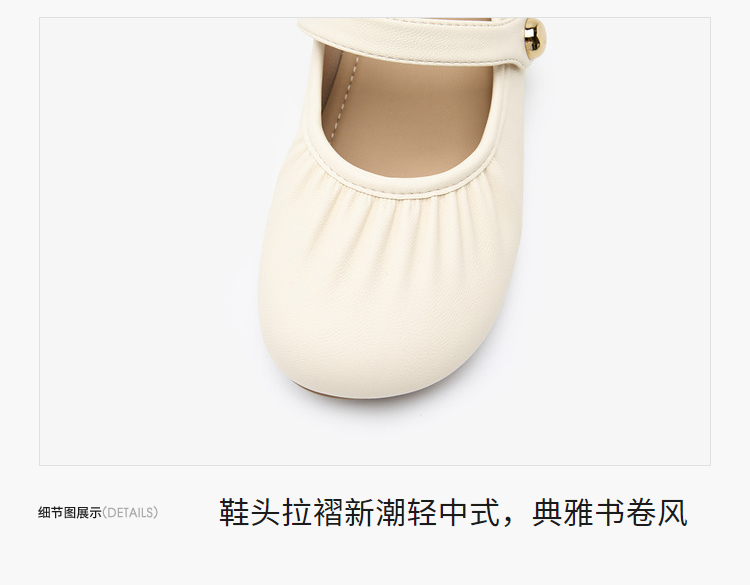 【限时秒杀】西遇玛丽珍平底鞋女新款褶皱法式晚晚鞋配裙软底低跟单鞋P0047025