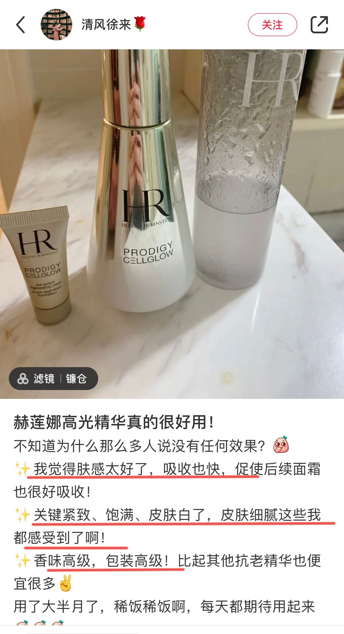 网上有不少姐妹,连续使用下来,效果都很好。一整天皮肤紧致弹润、毛孔细腻,连妆感都直接提升好几个档次,包括晚上到家洗完脸后,肤色都是亮的透的,这就是大牌贵妇亢老routine的魅力,从早到晚从里到外地给予皮肤妥帖照顾