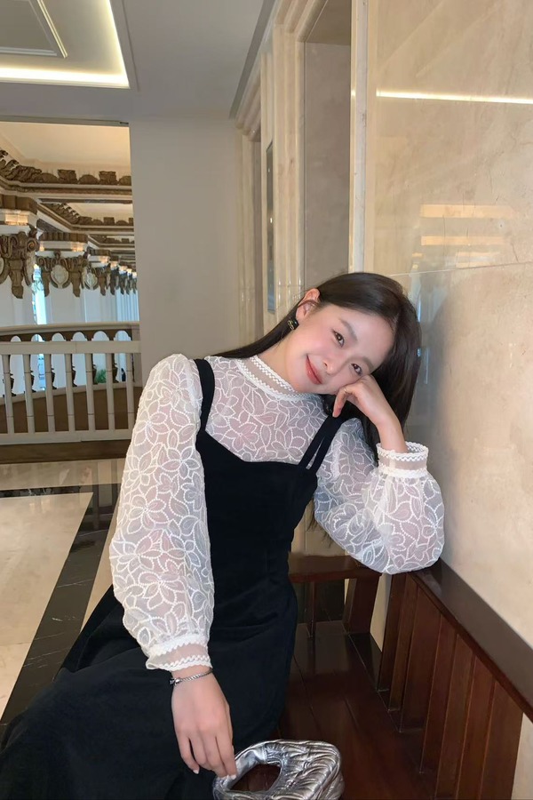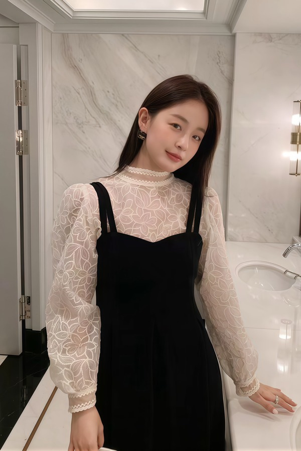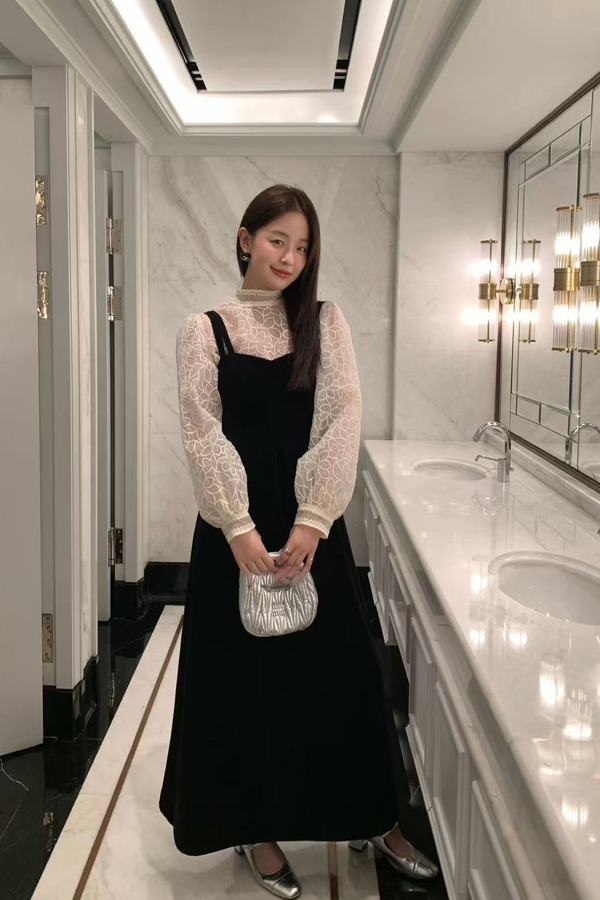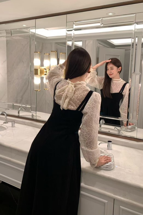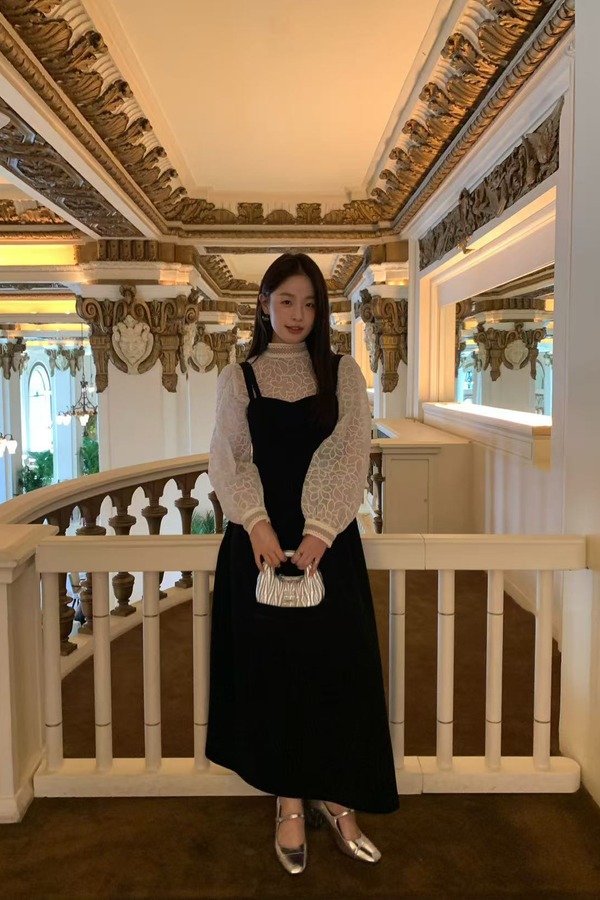 Stay2Weeks 赫本风气质双肩带丝绒A字连衣裙 21924