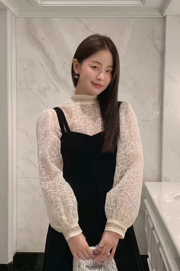 Le Malene 新中式水滴领拼接式连衣裙 19888