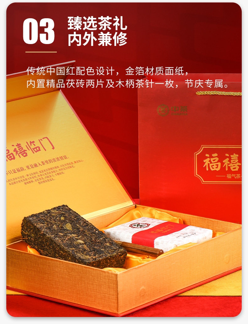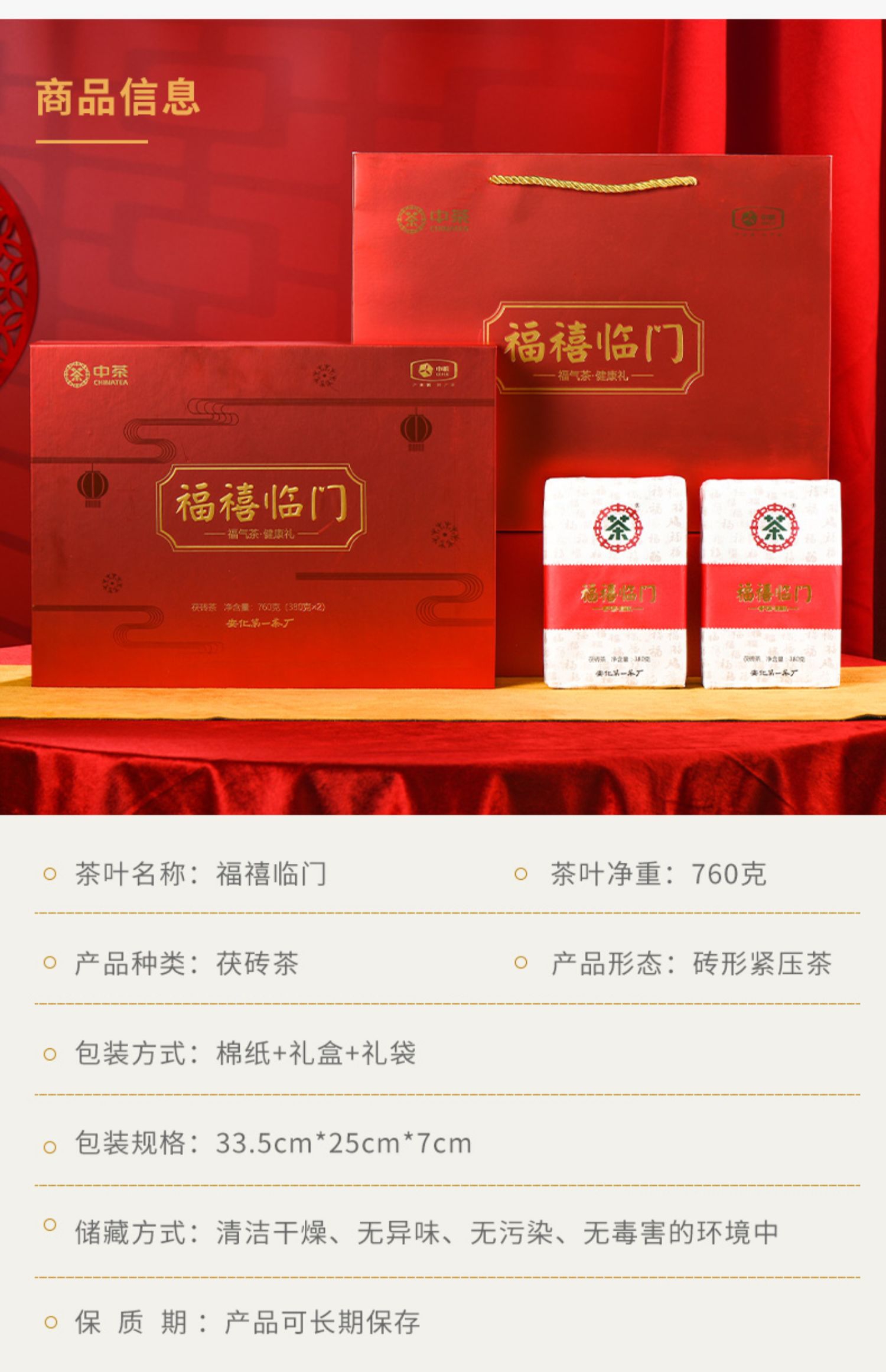 中粮-中茶安化黑茶金花茯砖中茶 百年木仓 湖南安化黑茶福禧临门礼盒760g/金花饱满/原产地直发
