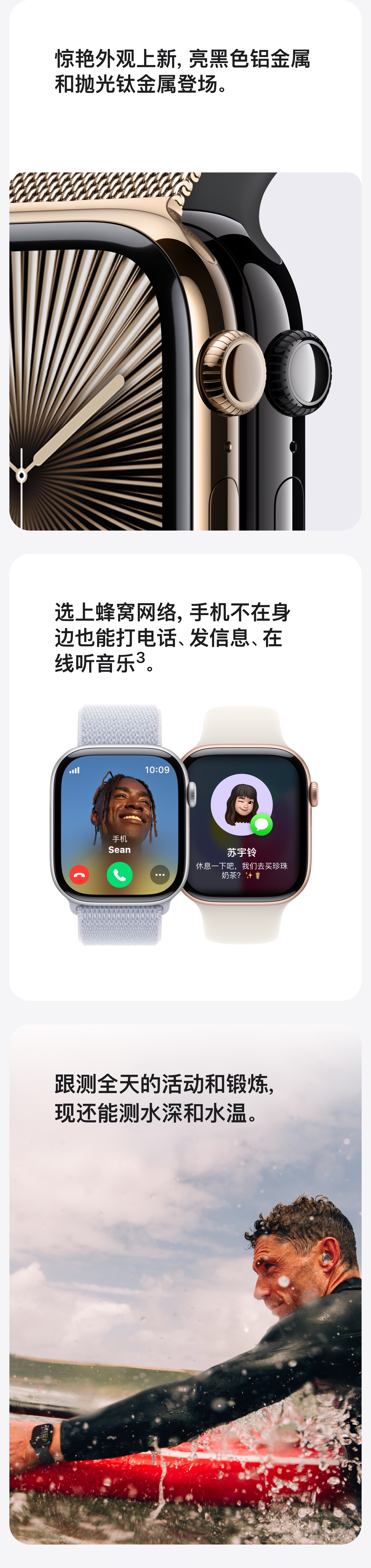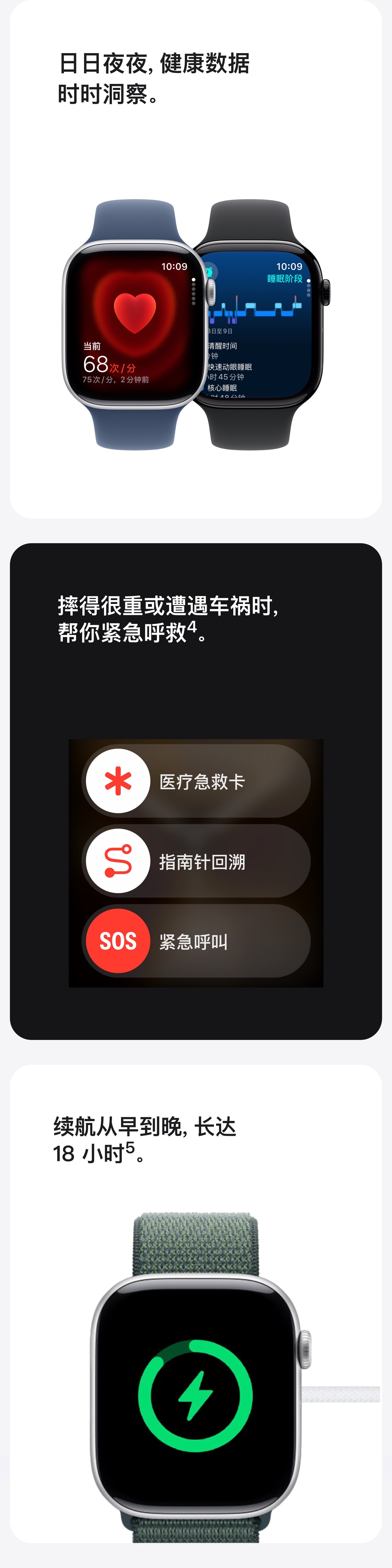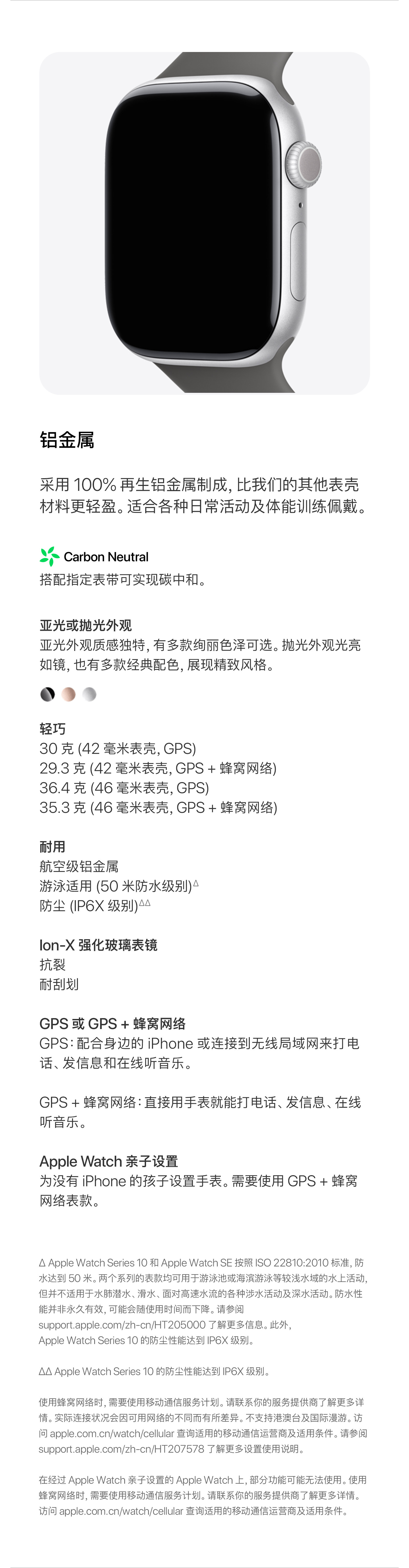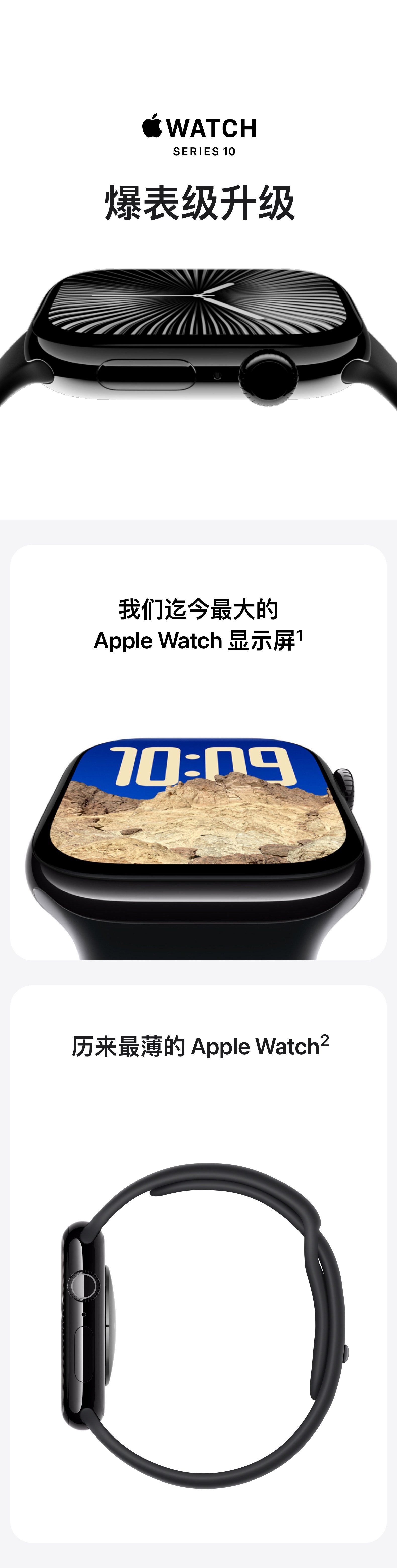 Apple/苹果 Watch Series 10 智能手表GPS/蜂窝款42/46毫米铝金属表壳黑色运动型表带S/M MX1M3CH/B