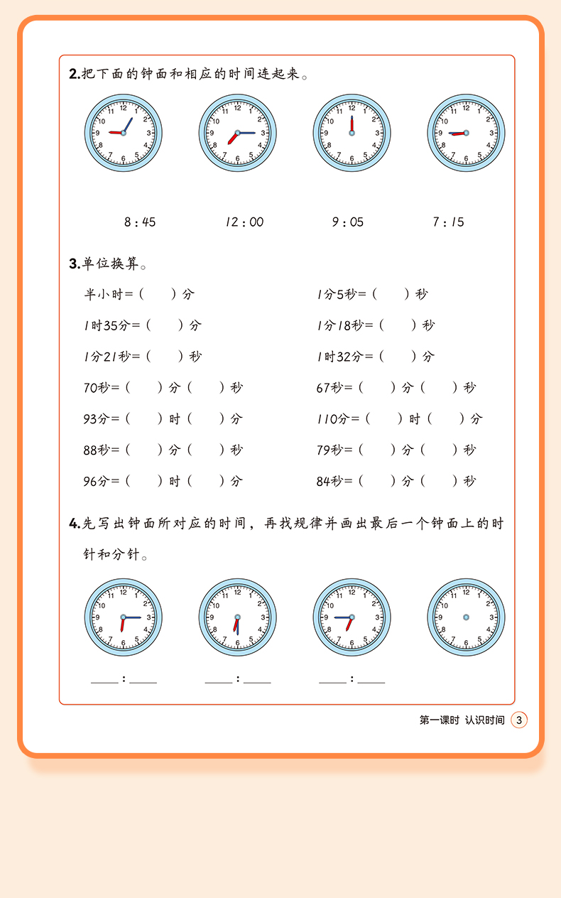 【斗半匠】小学二升三数学新教材过渡衔接时分秒倍的认识三年级增补册