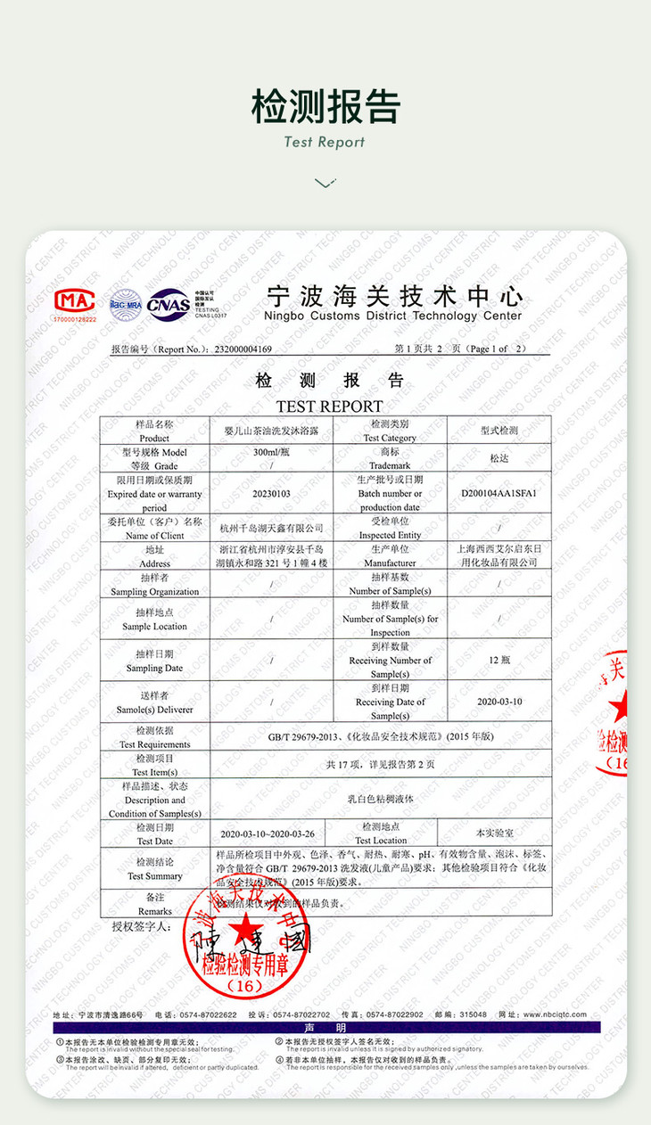 松达婴儿山茶油洗发沐浴露