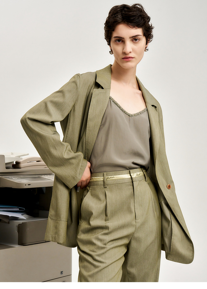 谜底西装外套女2024秋季新品通勤风宽松松弛感舒适西服243MW1187