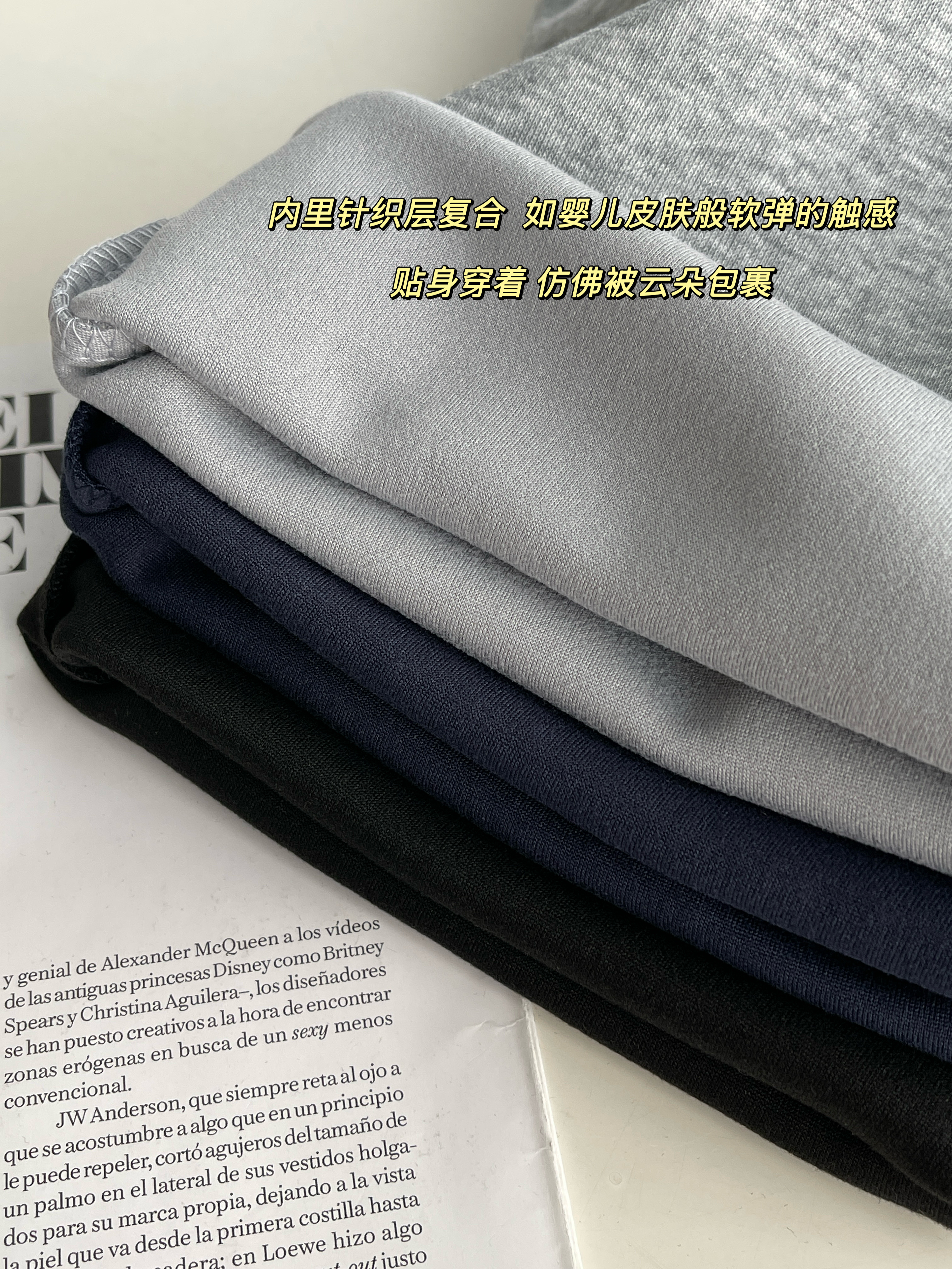【材质】面层:65%棉35%聚酯纤维;底层:95%聚酯纤维5%氨纶