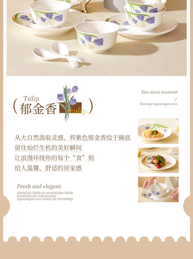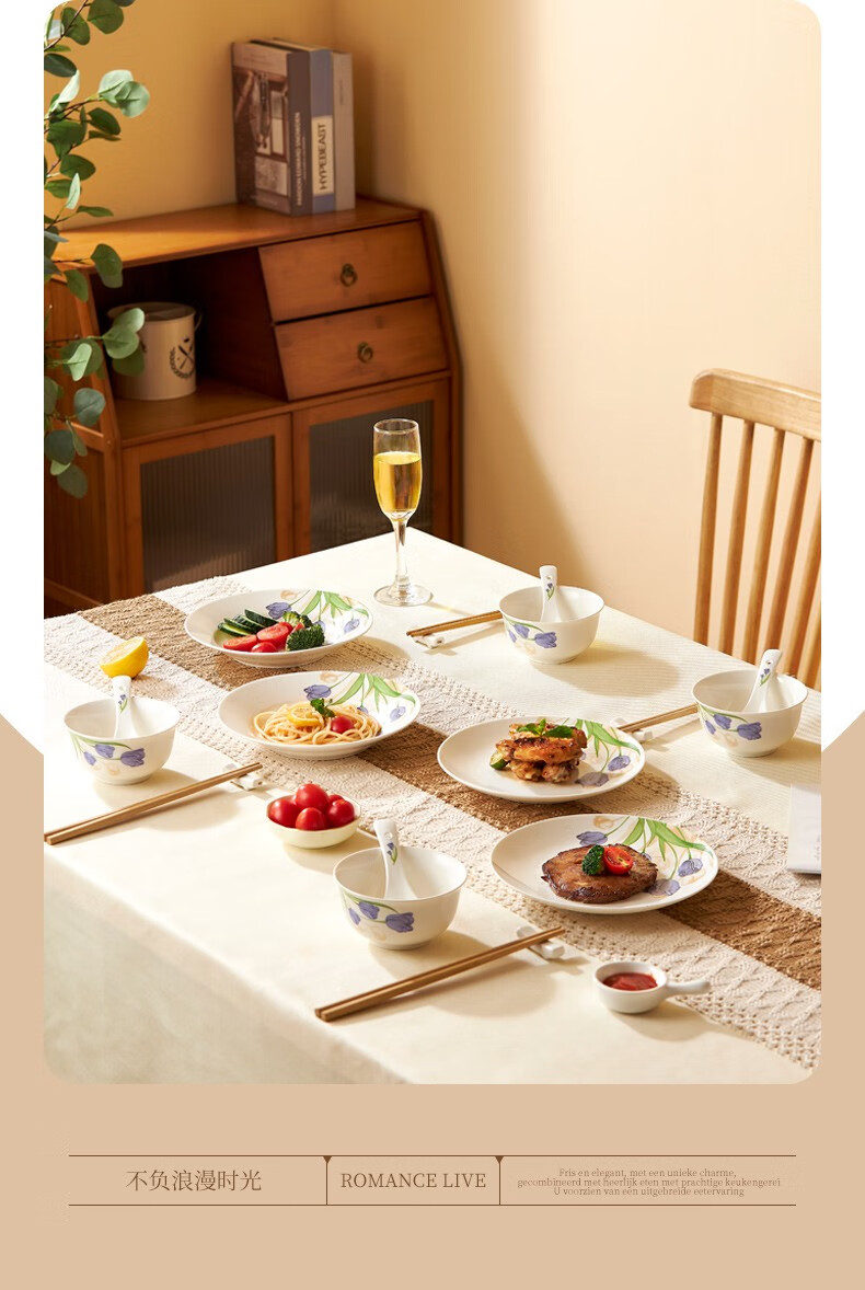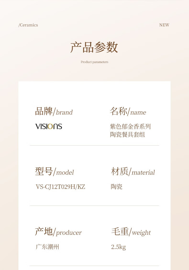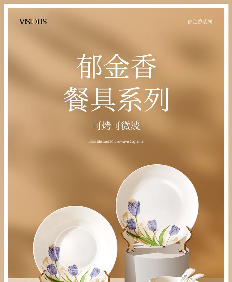 康宁 VISIONS紫色郁金香系列陶瓷餐具套组