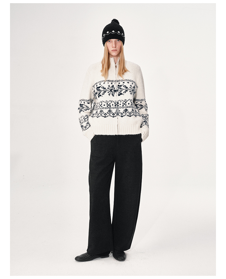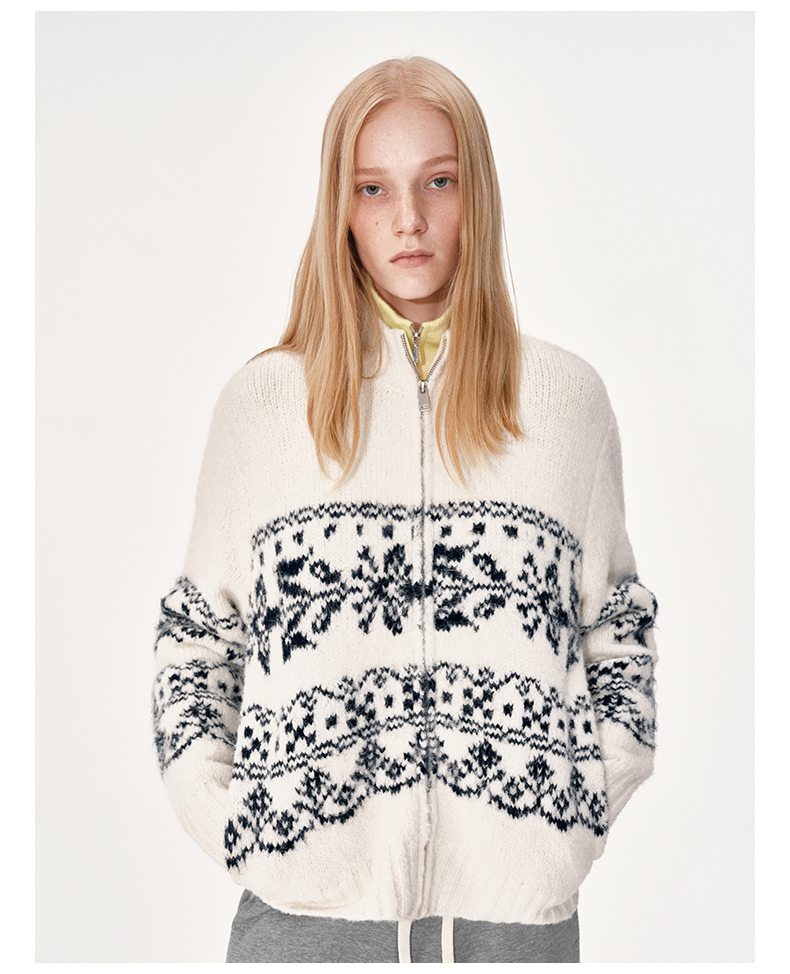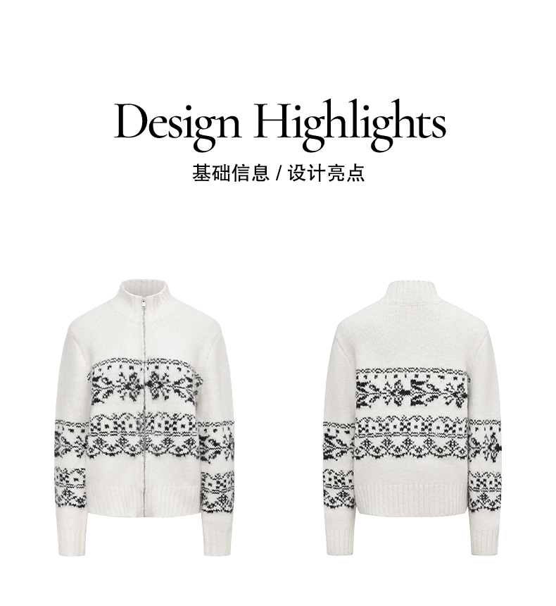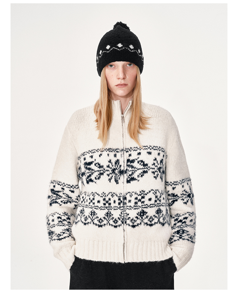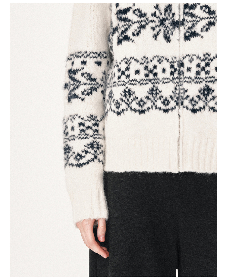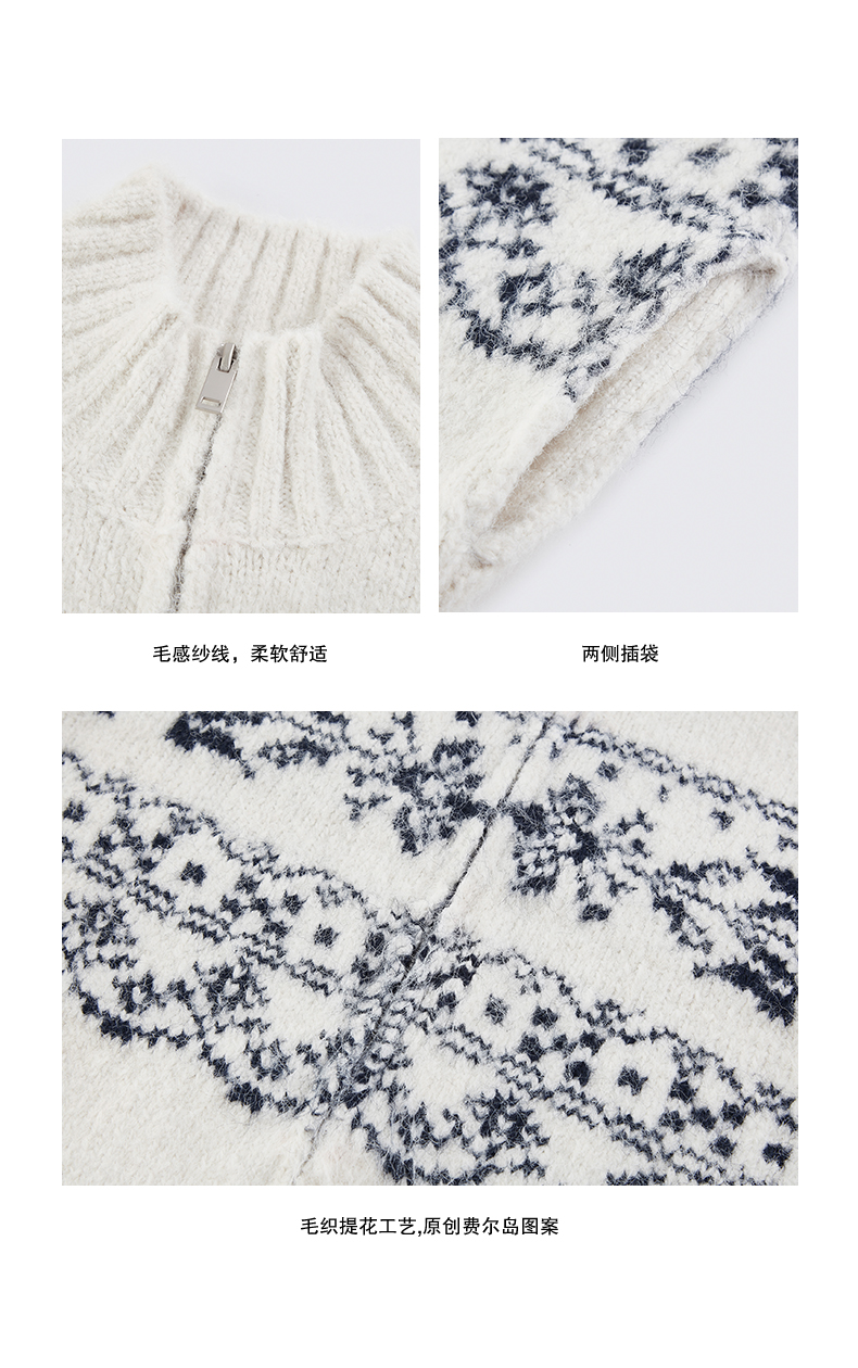 NUTH 费尔岛提花立领宽松拉链开衫针织外套女 白色(发货时间同步天猫)