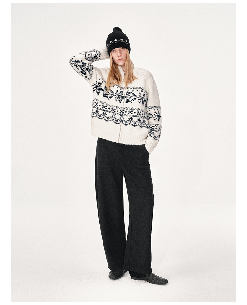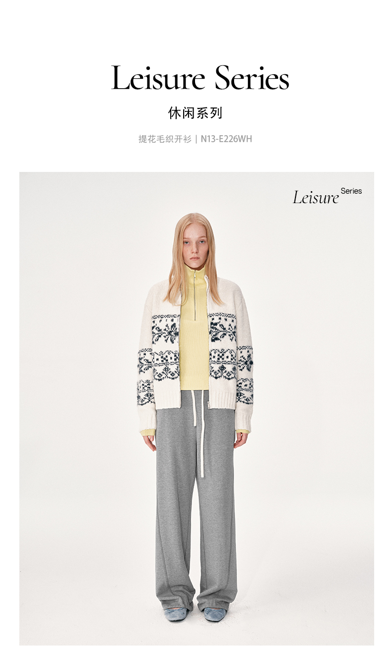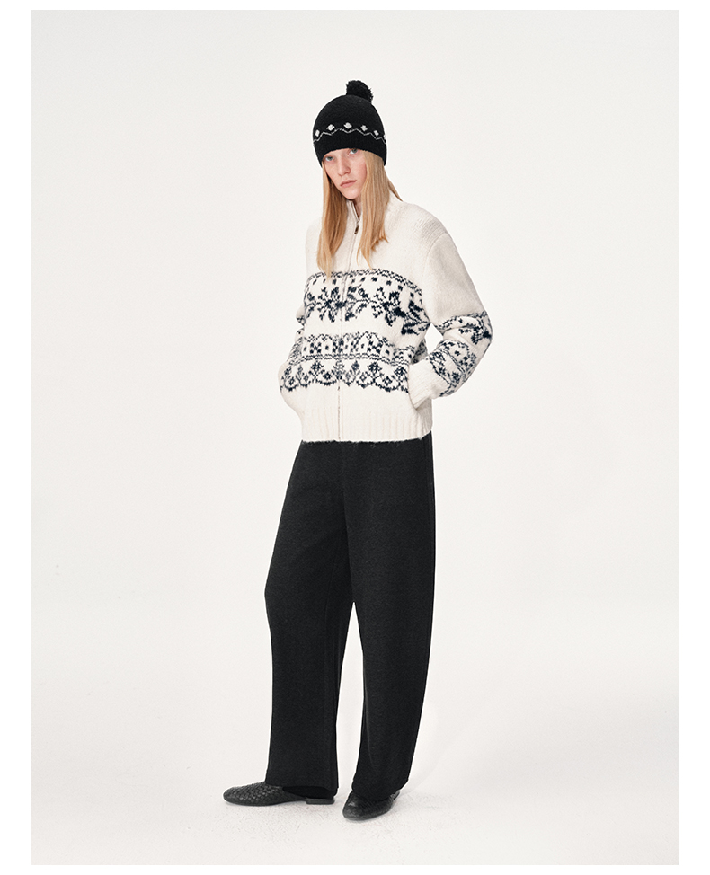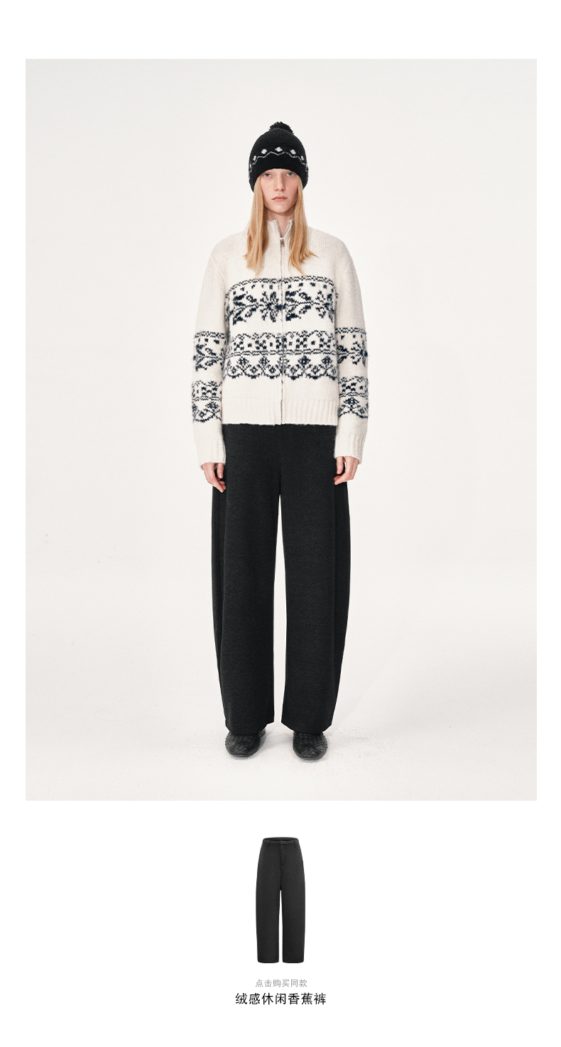 NUTH 费尔岛提花立领宽松拉链开衫针织外套女 白色(发货时间同步天猫)