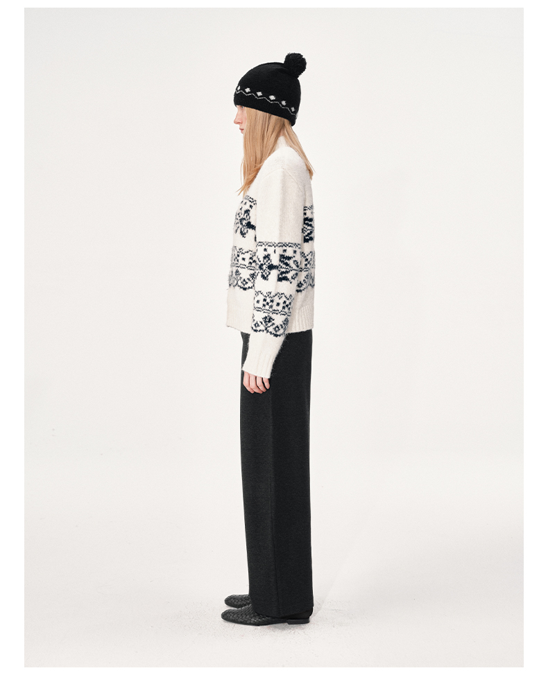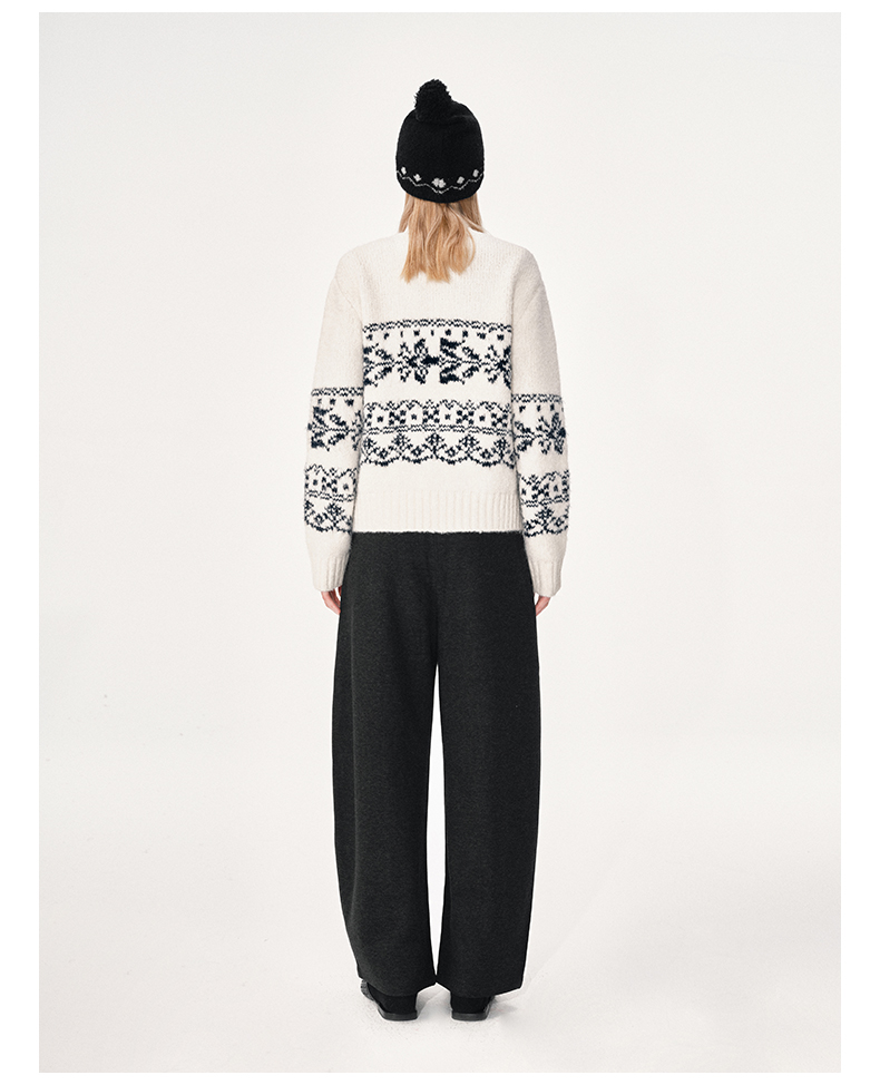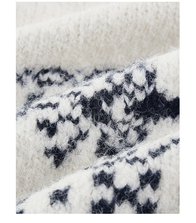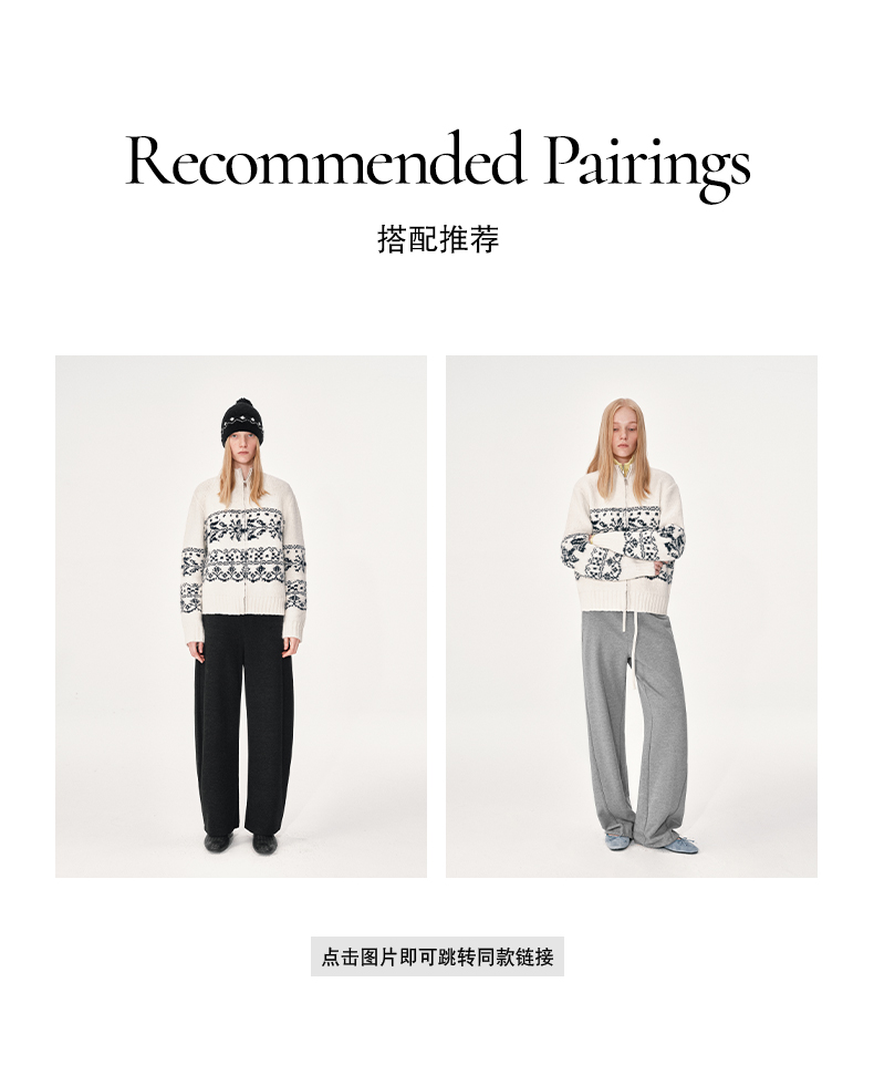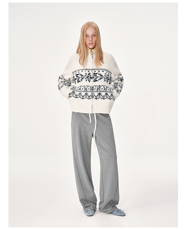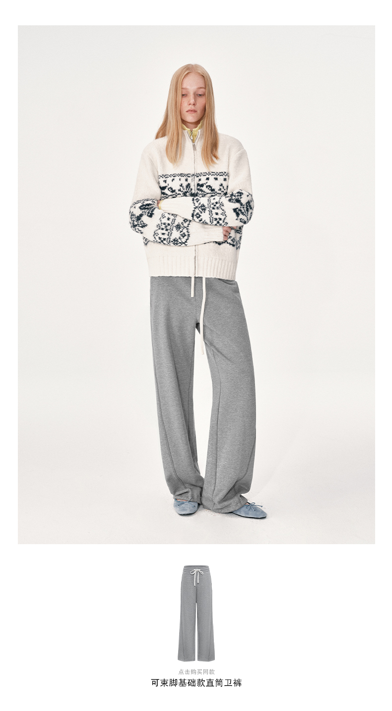 NUTH 费尔岛提花立领宽松拉链开衫针织外套女 白色(发货时间同步天猫)
