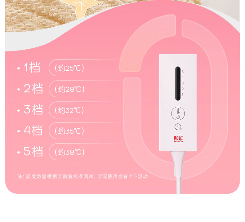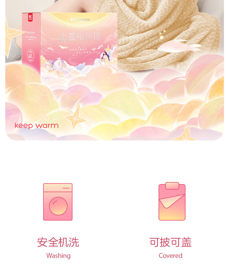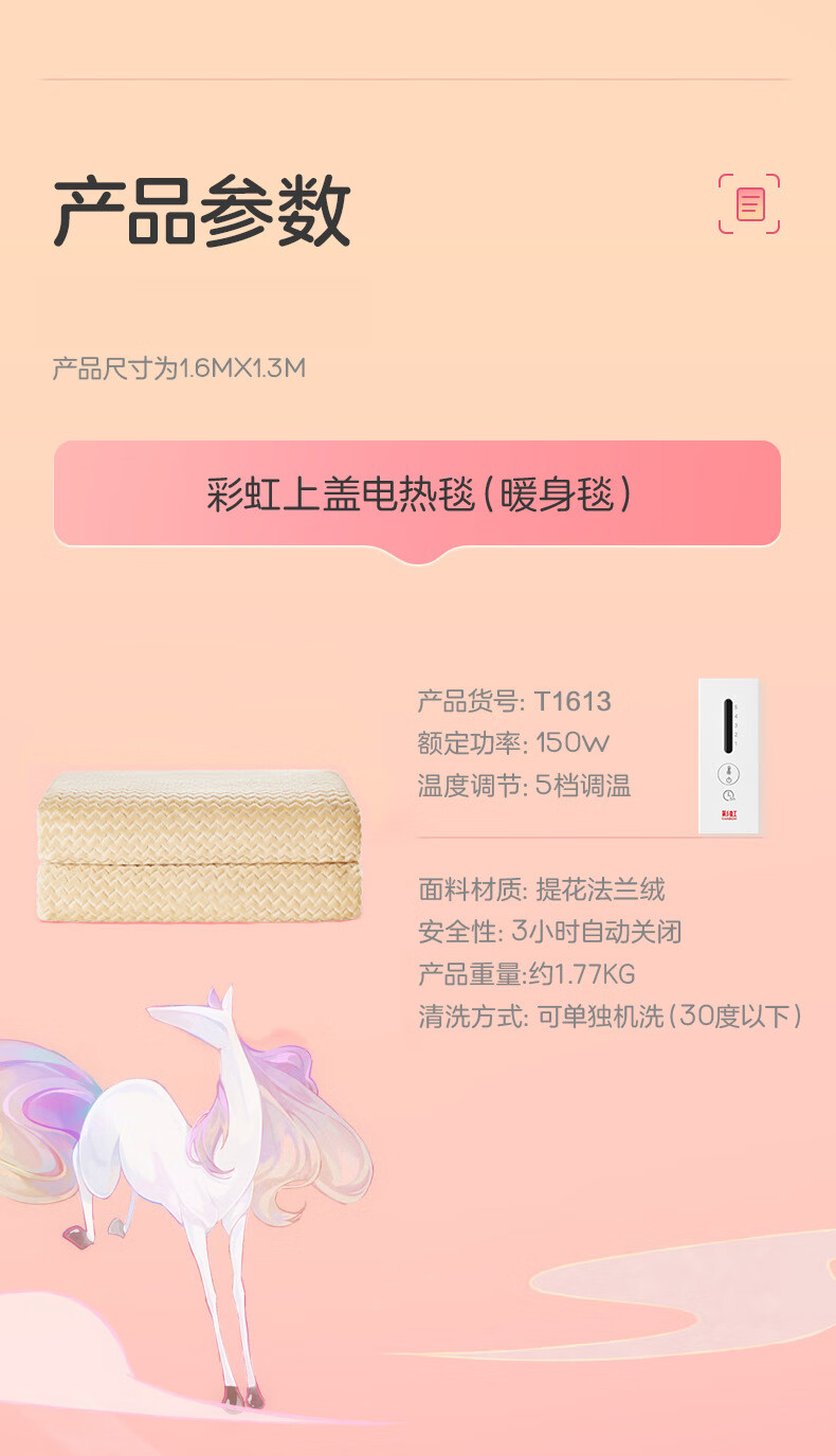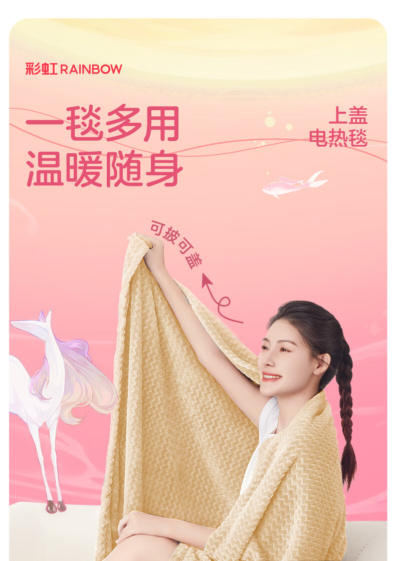 彩虹 上盖电热毯(暖身毯)双面提花法兰绒1.6米*1.3米奶牛驼T1613-T