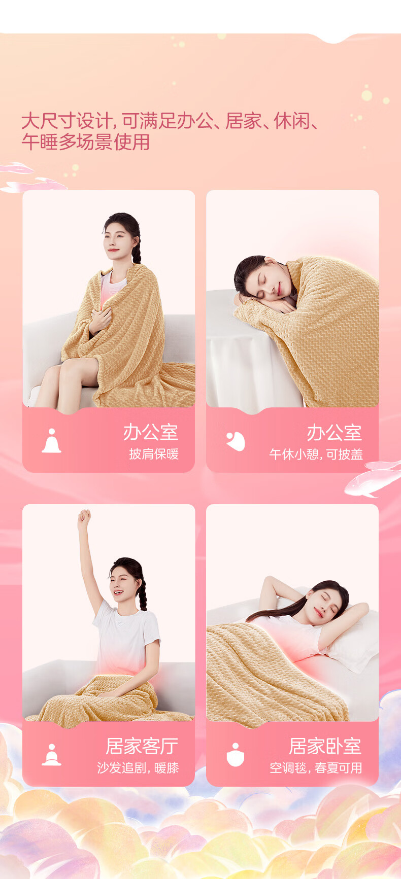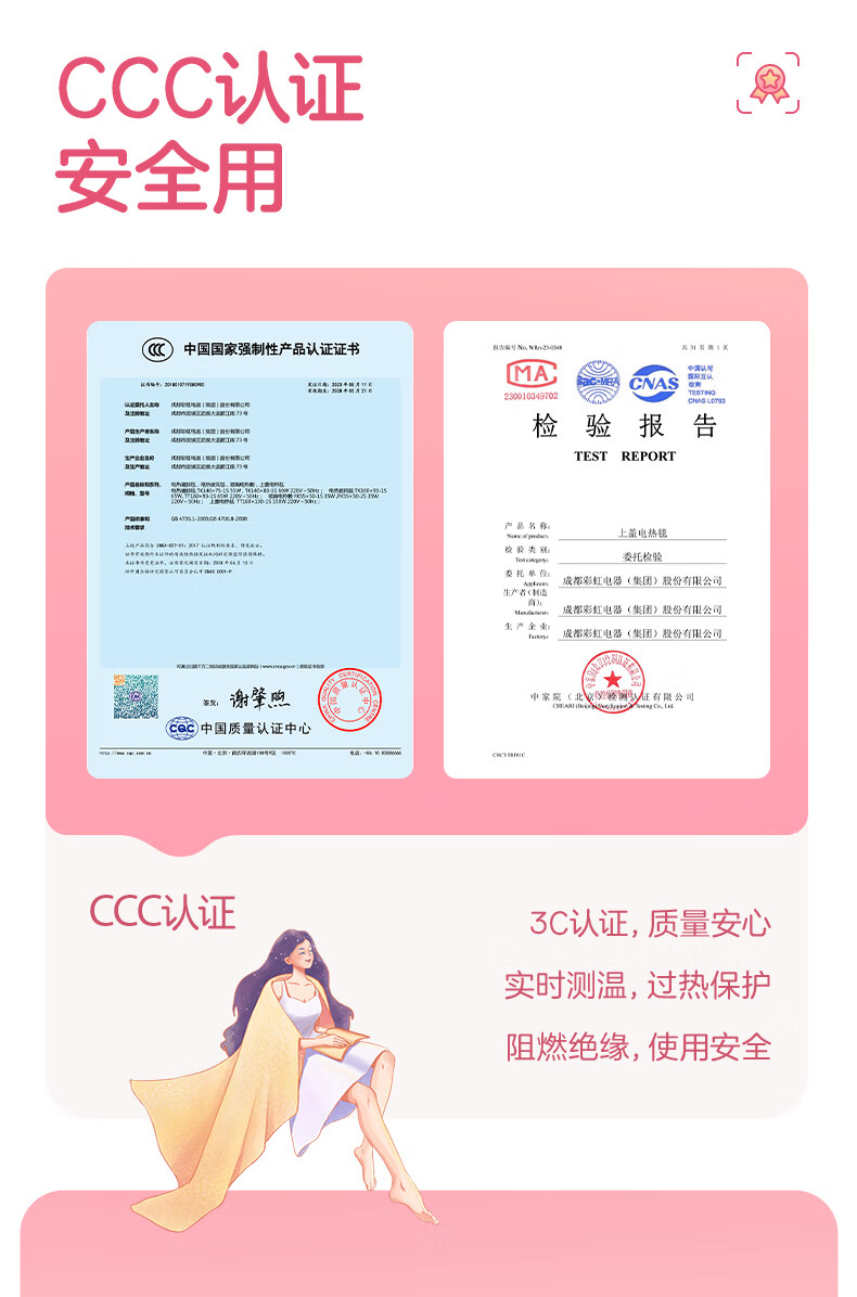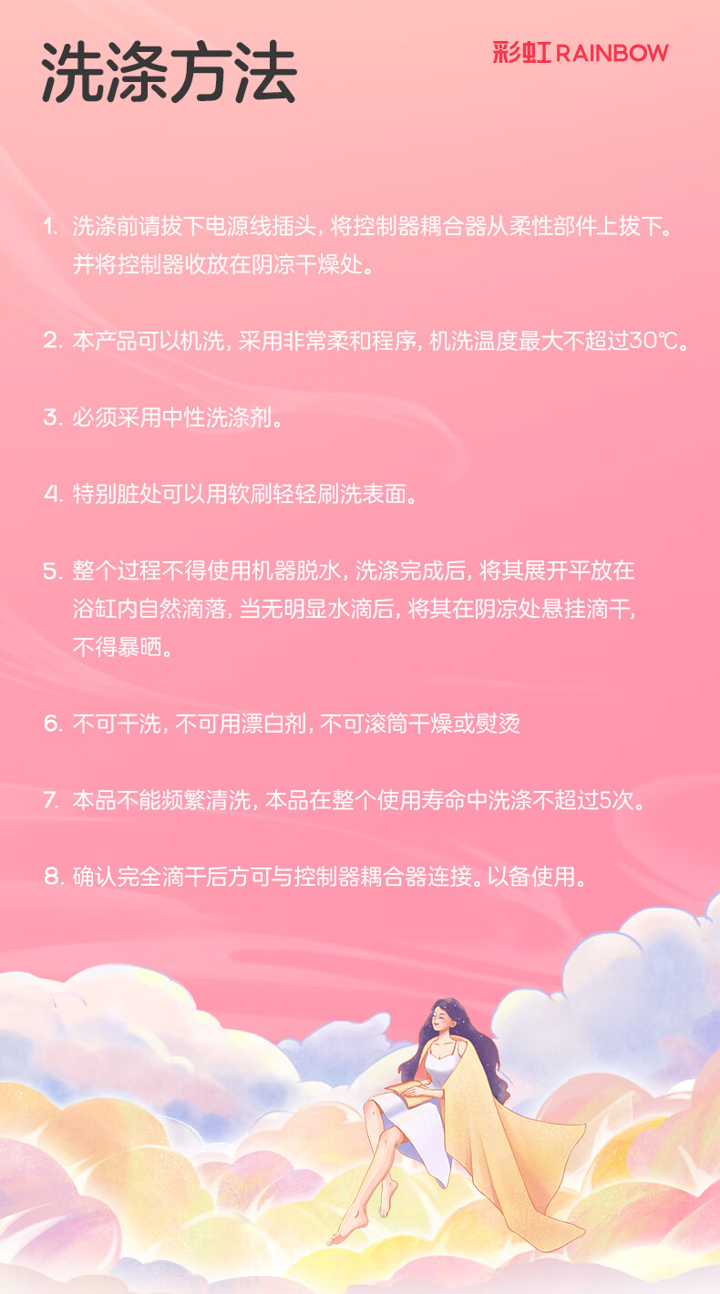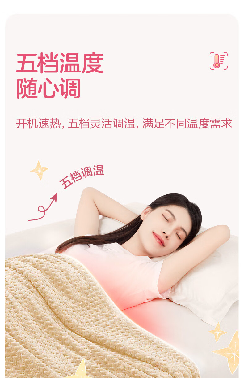 彩虹 上盖电热毯(暖身毯)双面提花法兰绒1.6米*1.3米奶牛驼T1613-T