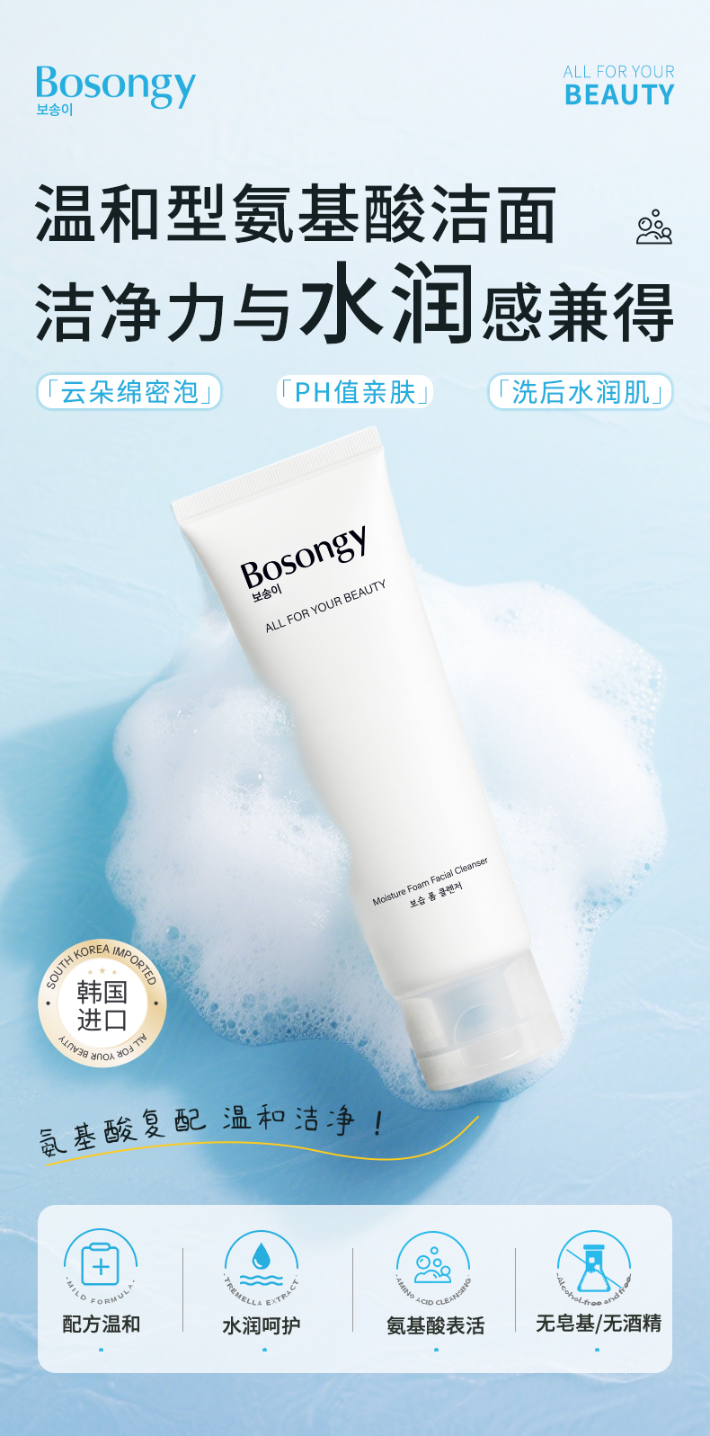 【保税仓】BOSONGY玻颂 温和净透保湿洁面乳120ml 商品图0