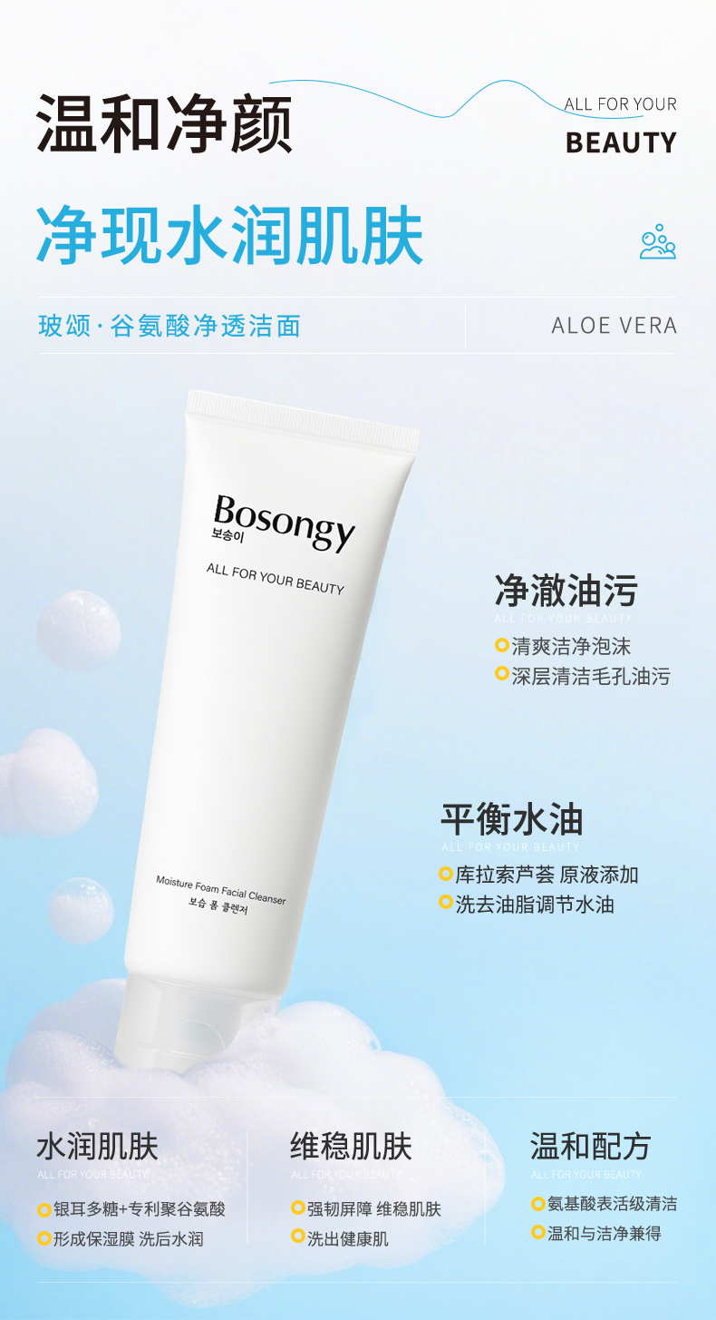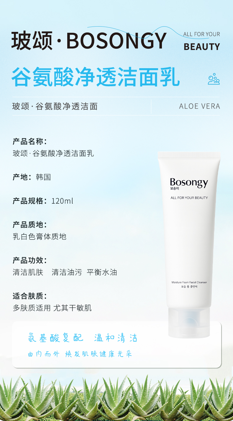 【保税仓】BOSONGY玻颂 温和净透保湿洁面乳120ml 商品图4